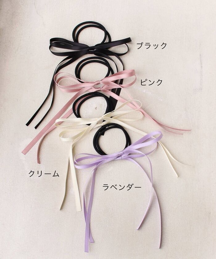 ・トレンドの細いリボンヘアゴムです!ラベンダー、ブラック、ピンク、クリームの 4つのカラーから選べられて オールシーズン、小さな女の子から大人まで使える!