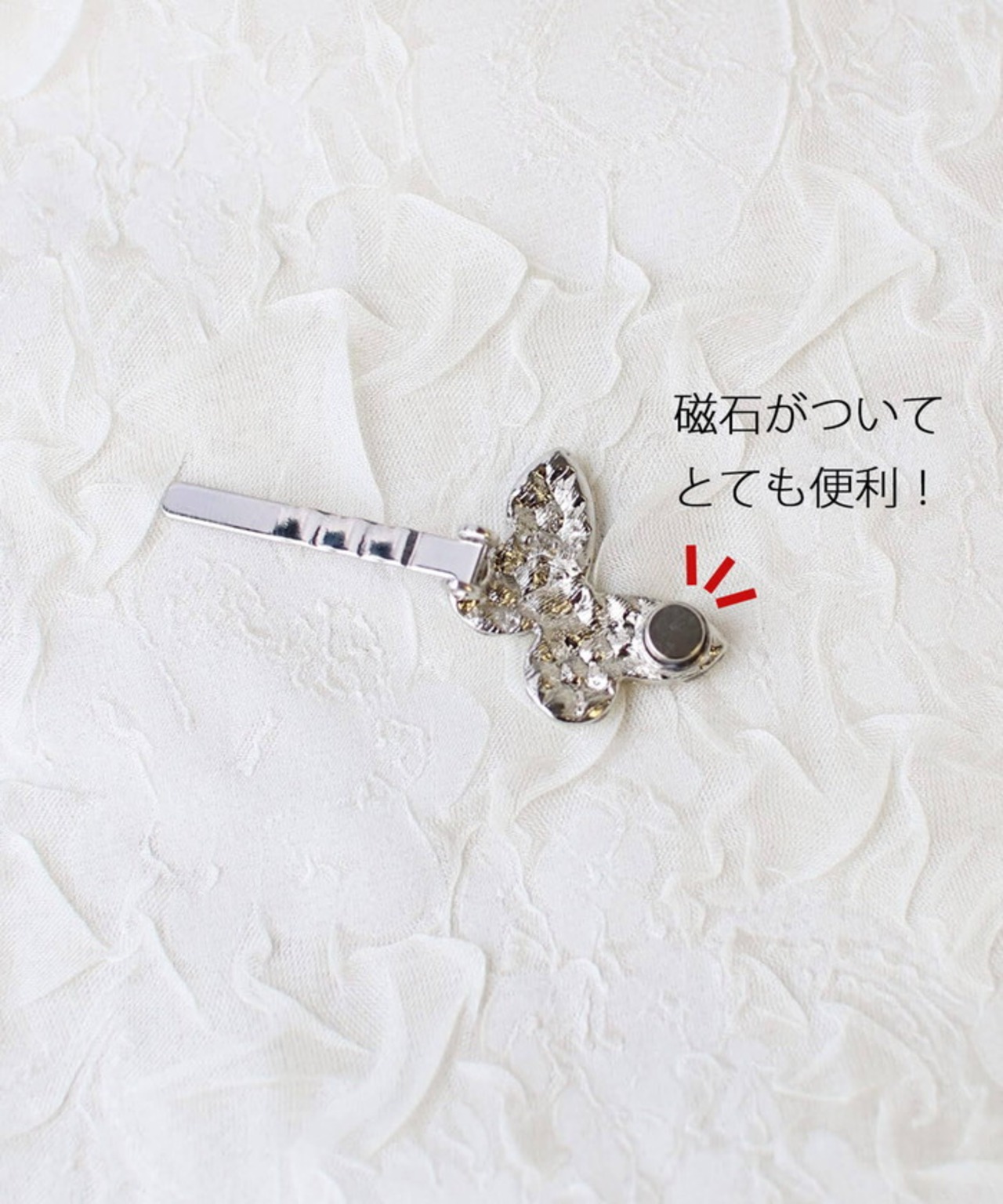 ・きらきらストーンで飾られた蝶々ヘアピンは、強力磁石付きで、髪に指すだけでピタッと留まり、活発なお子様にも安心してお使いいただけます。