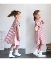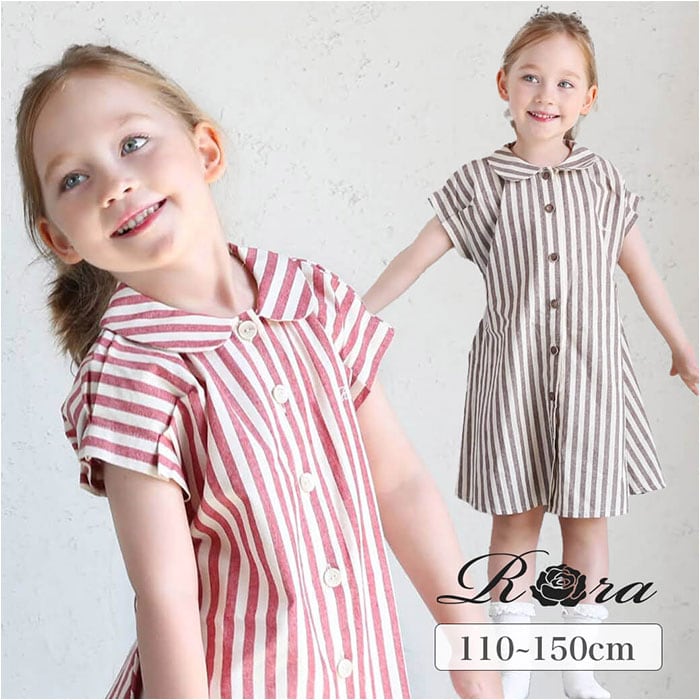 ・夏の思い出を思い起こすような ヴィンテージ風のストライプワンピース♪柔らかなブラウンと淡い赤のストライプは、日差しに優しく色褪せた 思い出のページをめくるかのよう。