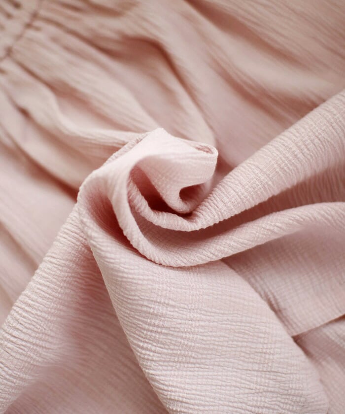 ・生地のクシュっとした質感が 歩くたびにふわりと空気を捉え、軽やかに動きます。