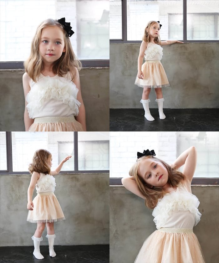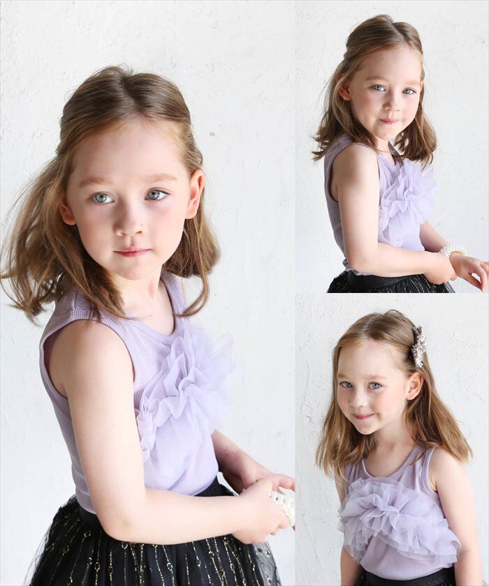 ・軽やかなオーガンジーのフリルは、ボリューム感たっぷりで夏の風を纏った子供たちの動きを引き立てます。