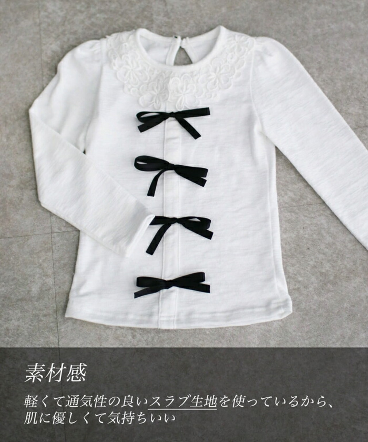 ・娘さんが大好きになること間違いなしの スラブ生地リボントップス。