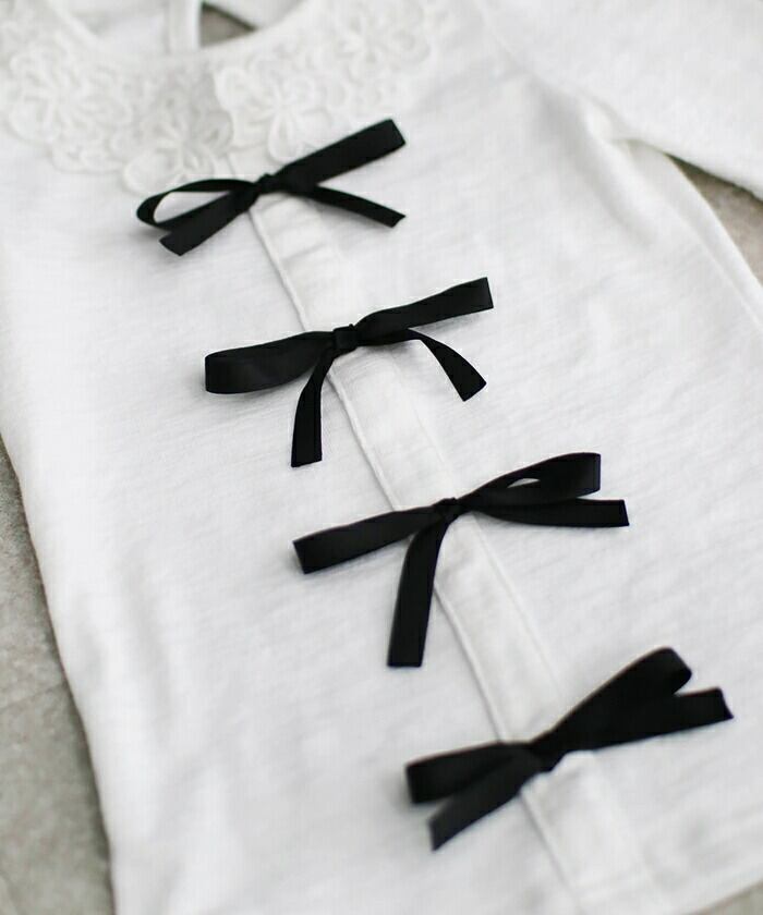 ・これ一枚で特別な日も大丈夫!トレンドの細リボン 真ん中には黒の細リボンが付いていて、白い生地に映えてとってもおしゃれ。