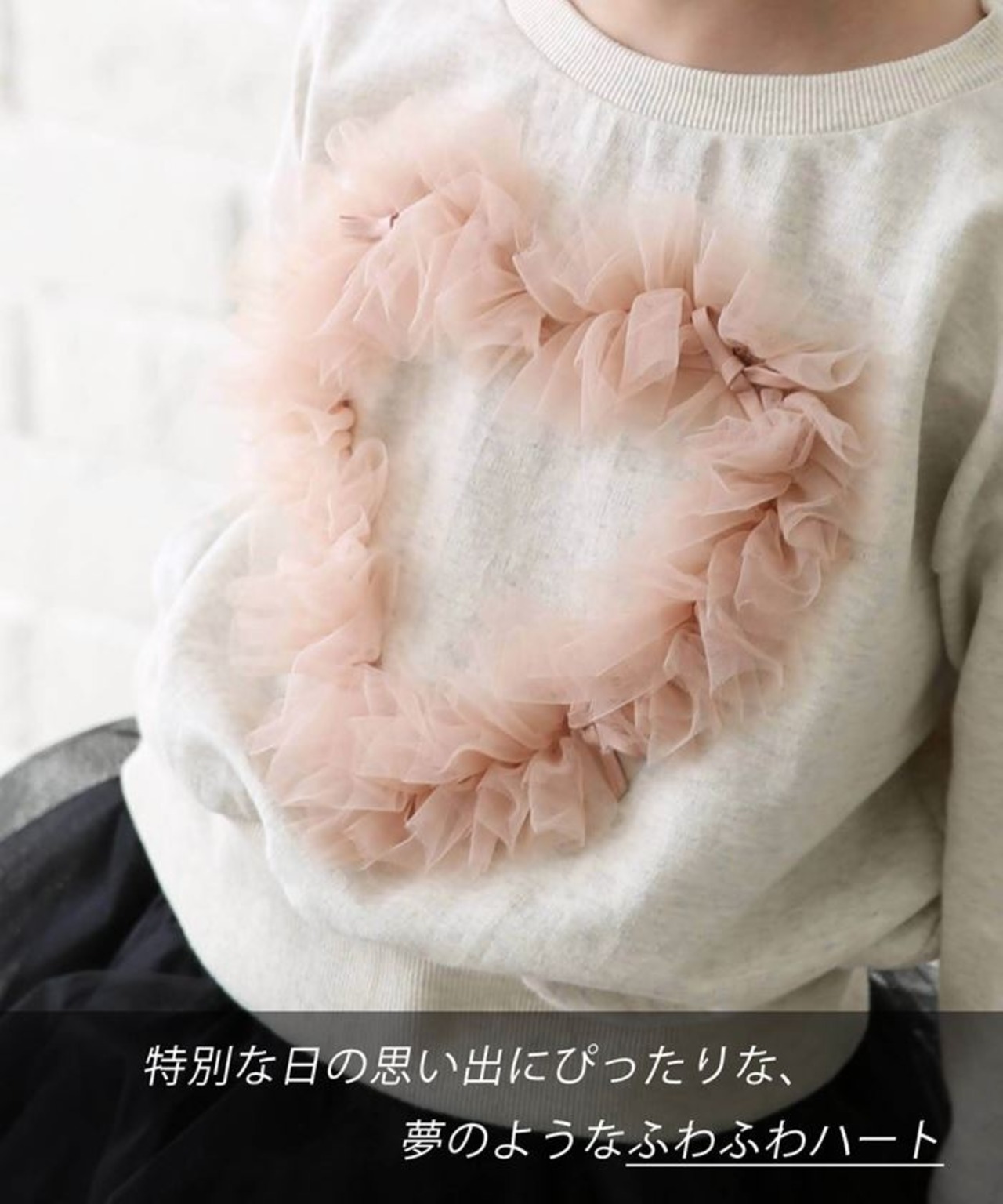 ・スウェットの真ん中には チュールで作られたハート。