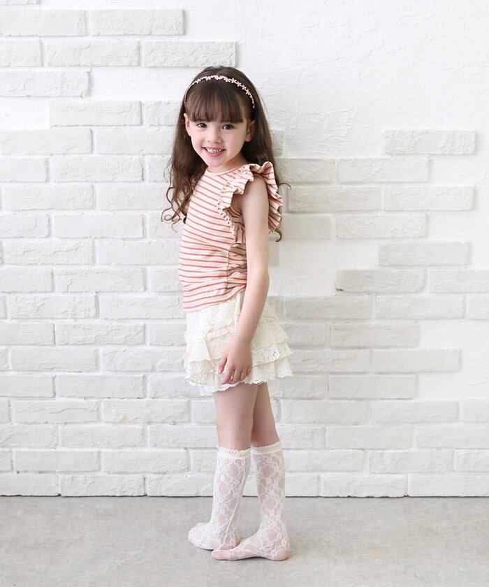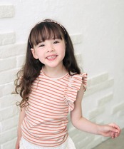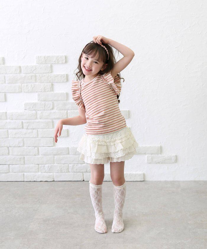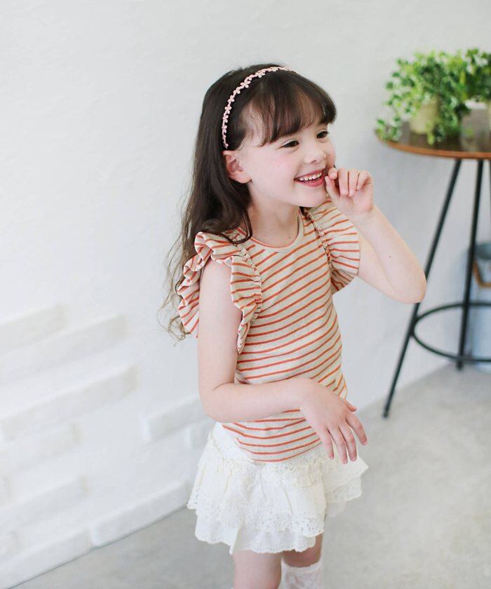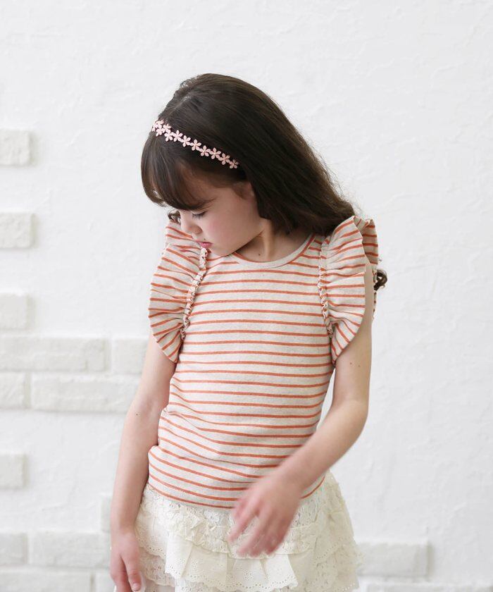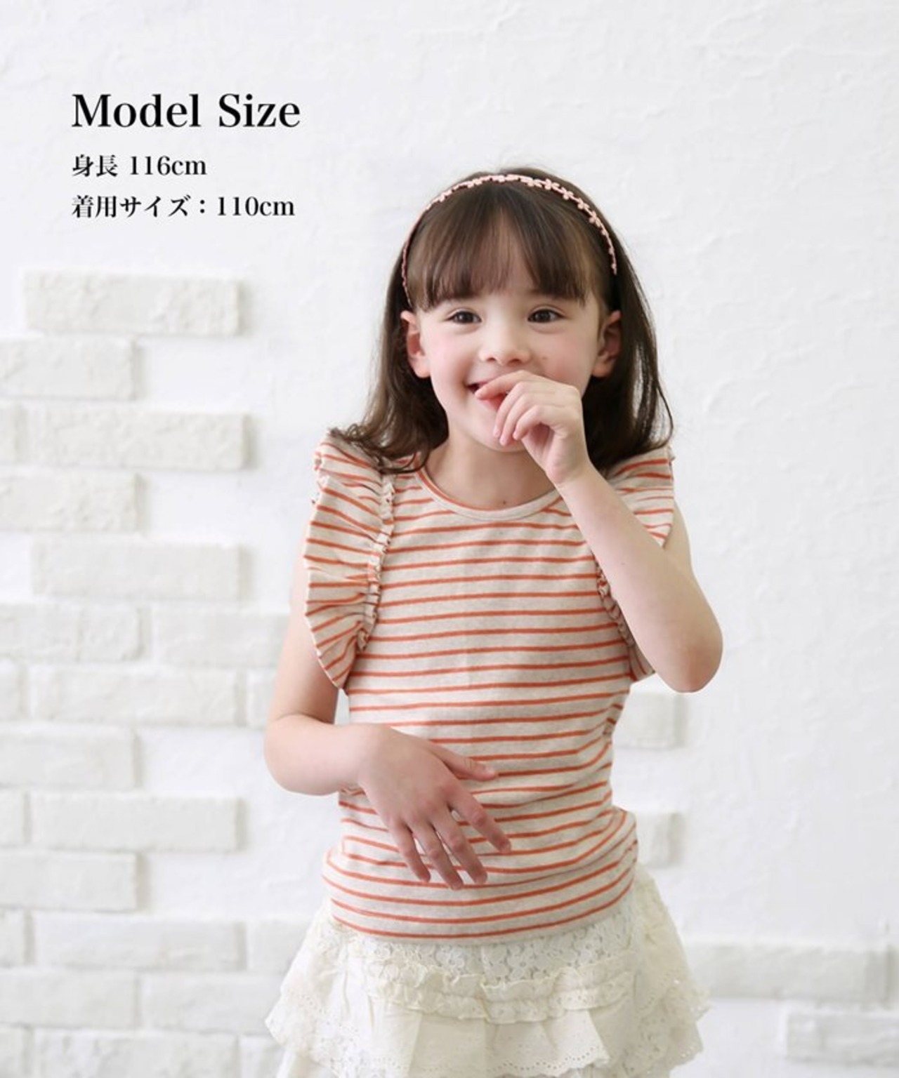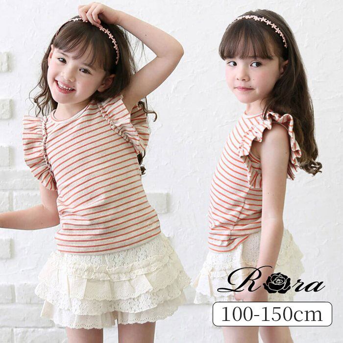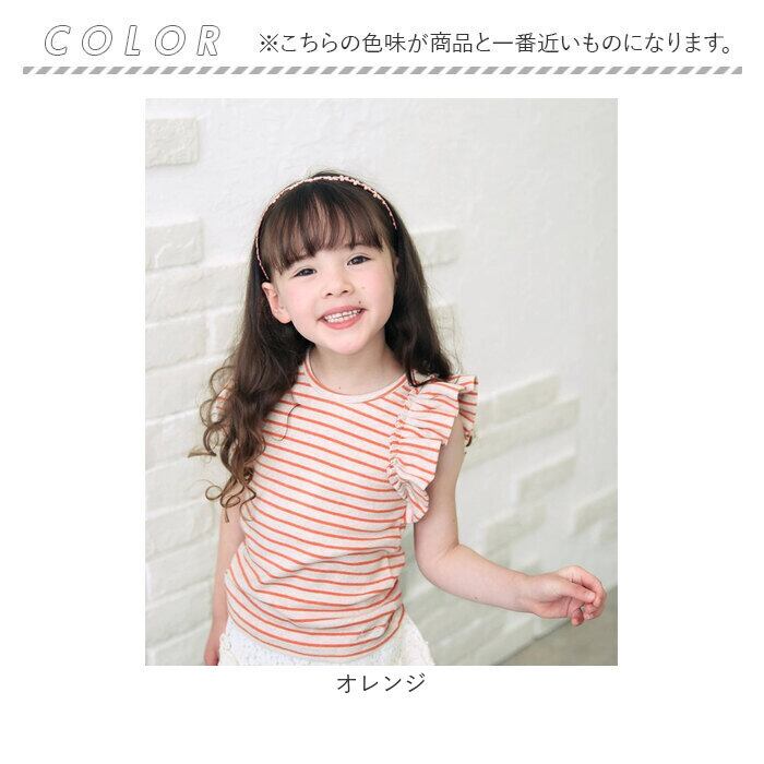 キッズ Tシャツ 半袖 女の子 通販 カットソー 73082401 半袖Tシャツ 夏服 フリル ボーダー 綿100 コットン レトロ カジュアル 可愛い おしゃれ かわいい オシャレ こども 女子 通園 通学 トップス 子ども服 子供服 キッズファッション