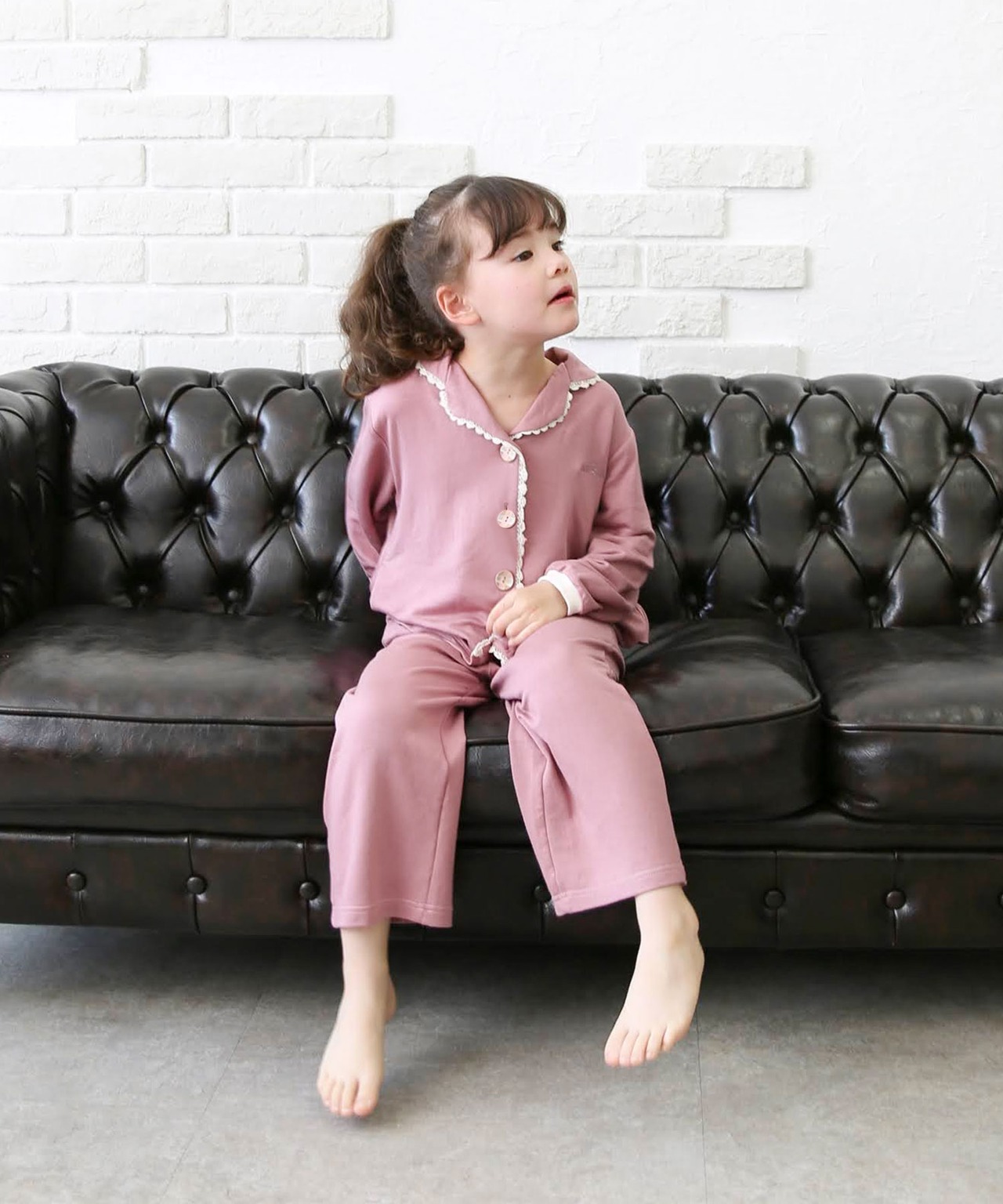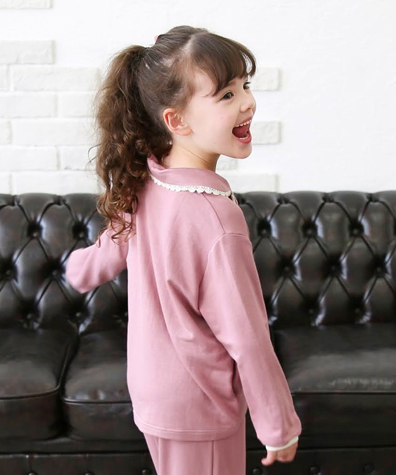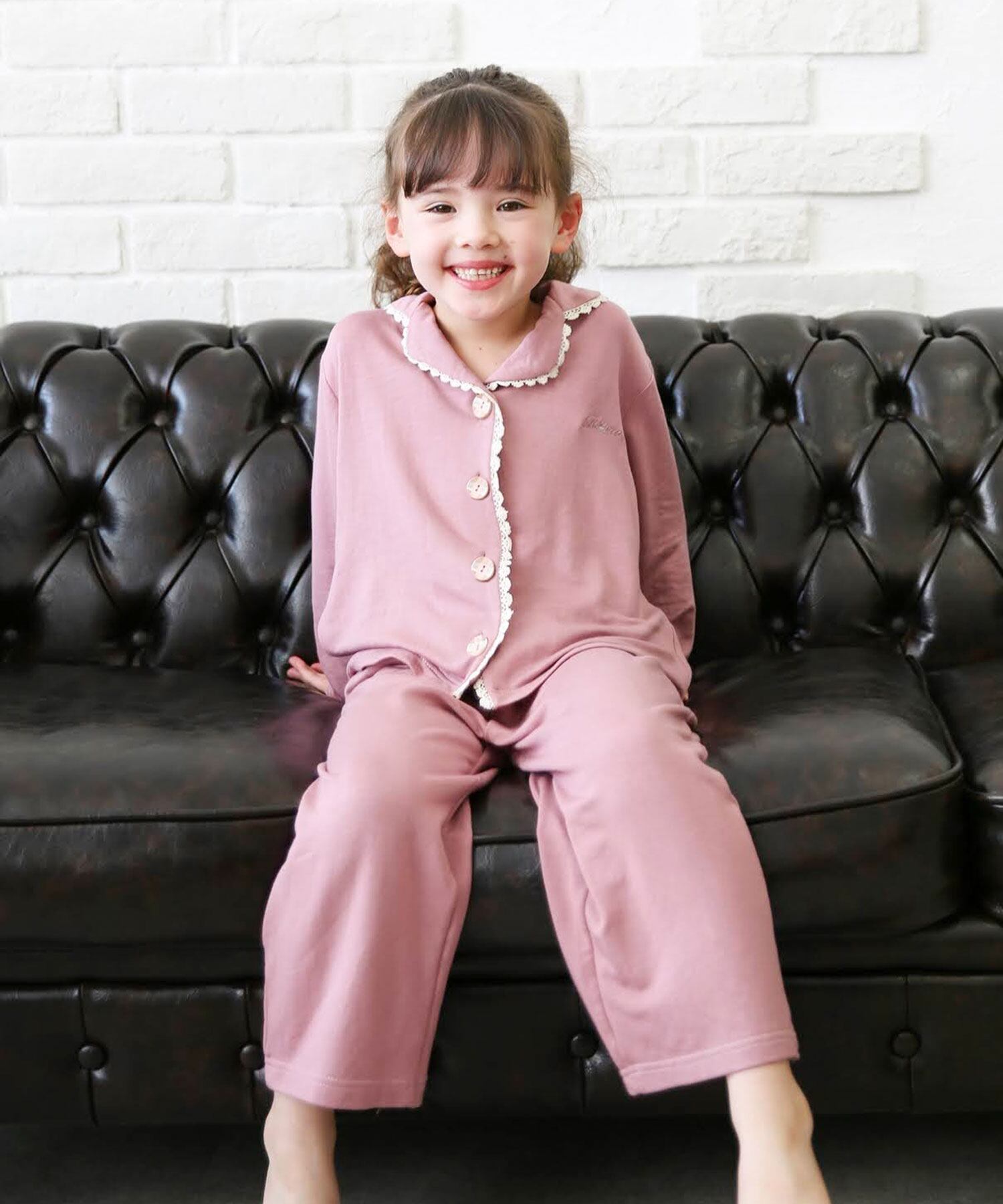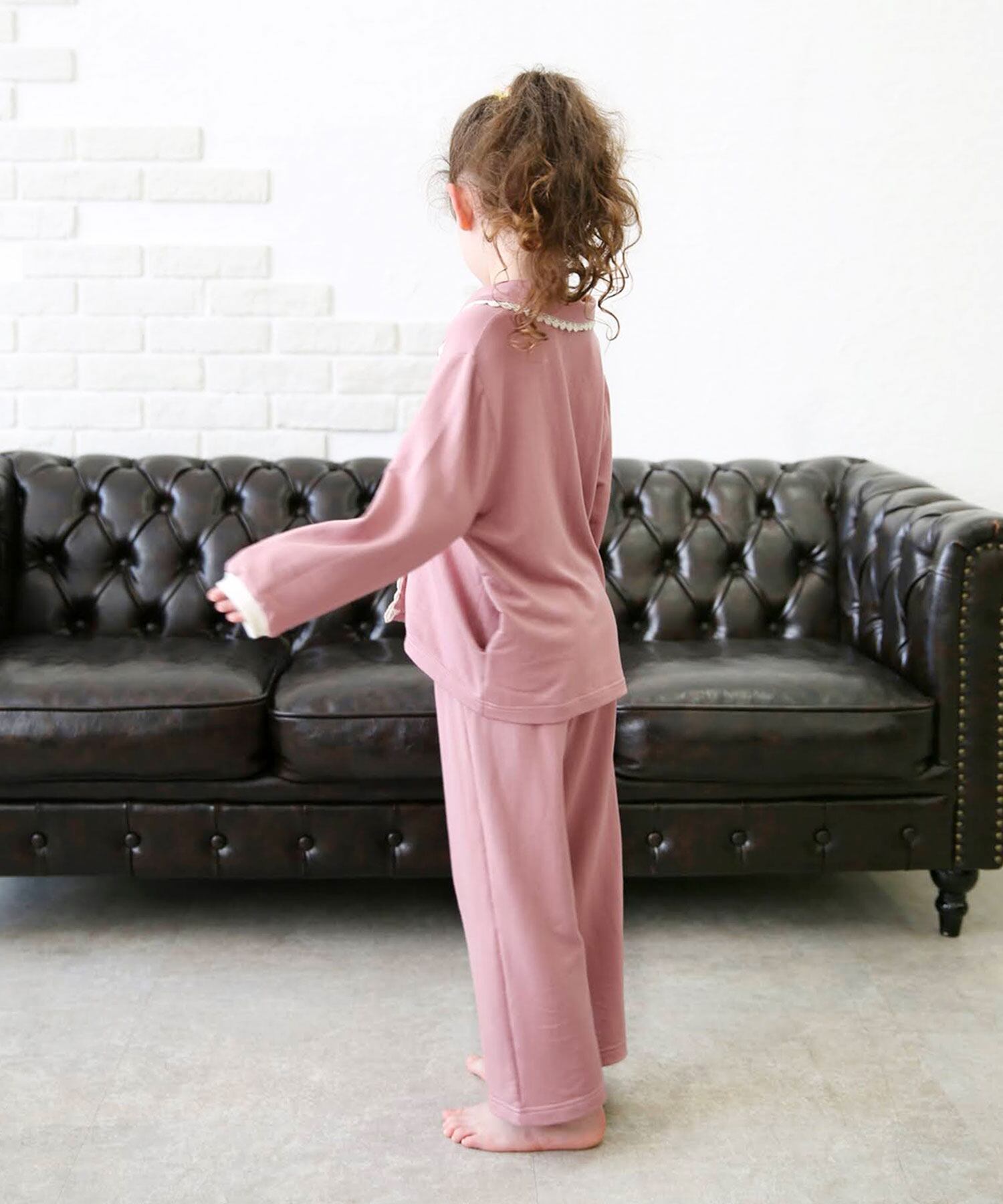 パジャマ 前開き 女の子 キッズ 通販 セットアップ 75012402 上下セット 長袖 上下 長ズボン レース 寝巻き 部屋着 襟付き フロントボタン おしゃれ かわいい オシャレ 可愛い ルームウェア ナイトウェア 子ども服 子供服 キッズファッション