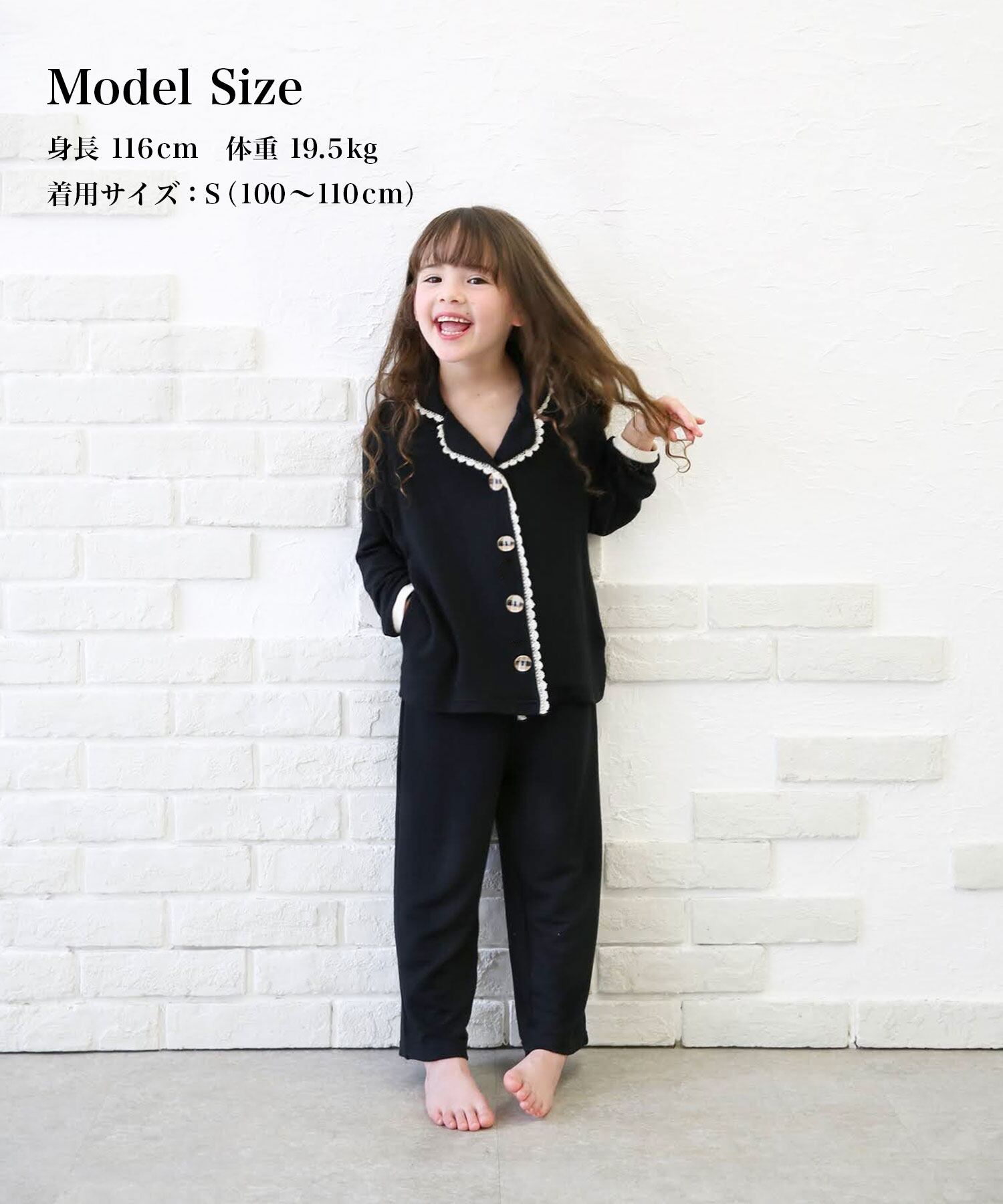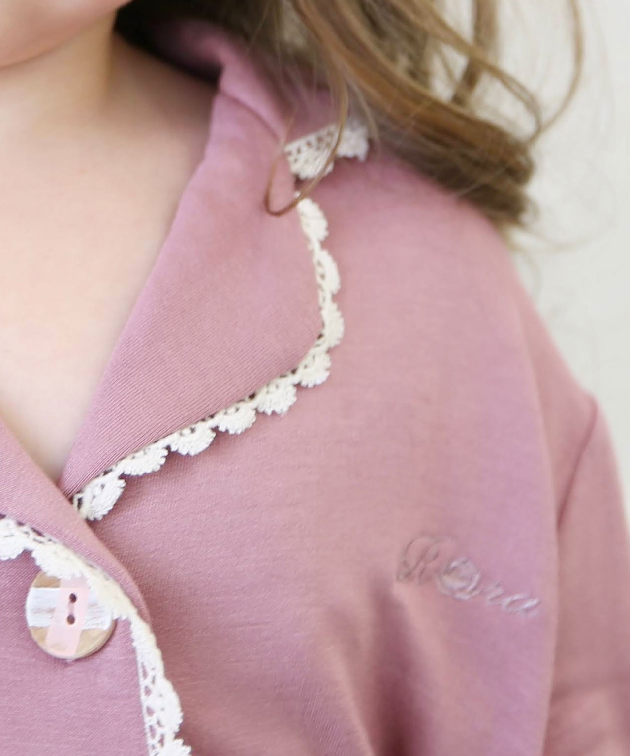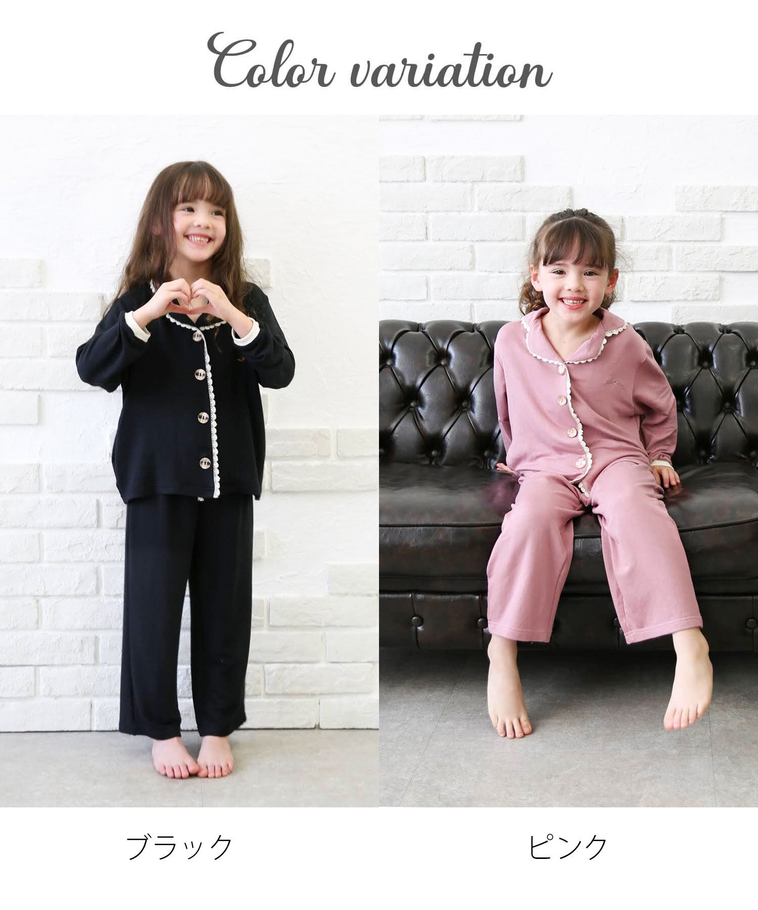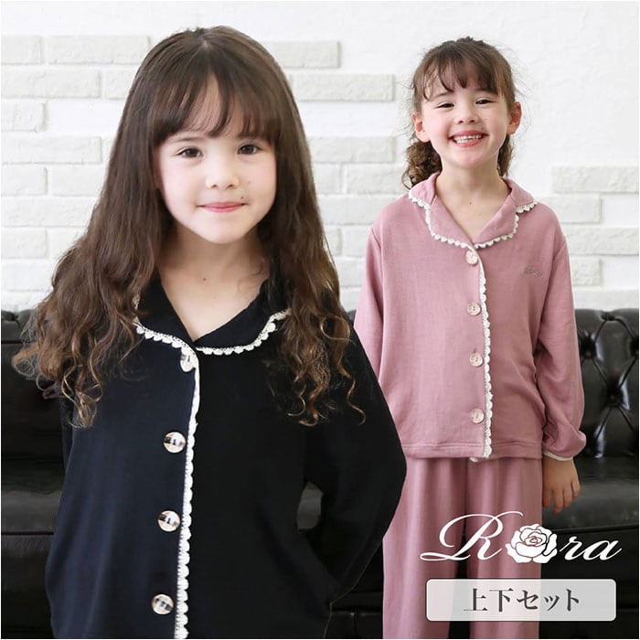 パジャマ 前開き 女の子 キッズ 通販 セットアップ 75012402 上下セット 長袖 上下 長ズボン レース 寝巻き 部屋着 襟付き フロントボタン おしゃれ かわいい オシャレ 可愛い ルームウェア ナイトウェア 子ども服 子供服 キッズファッション