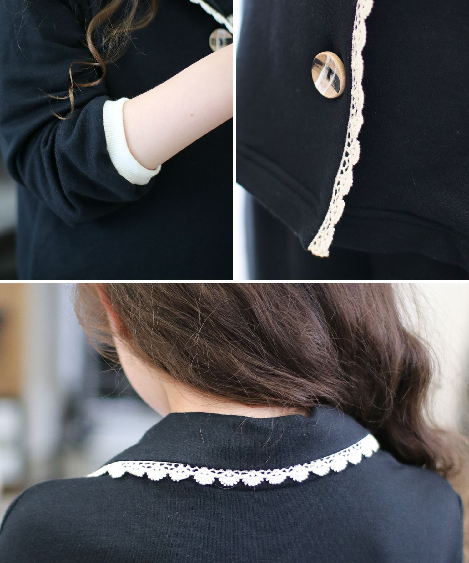 ・襟には小さくて可愛いレースが施されており、繊細でありながらも強く、洗濯しても美しさを保ちます。