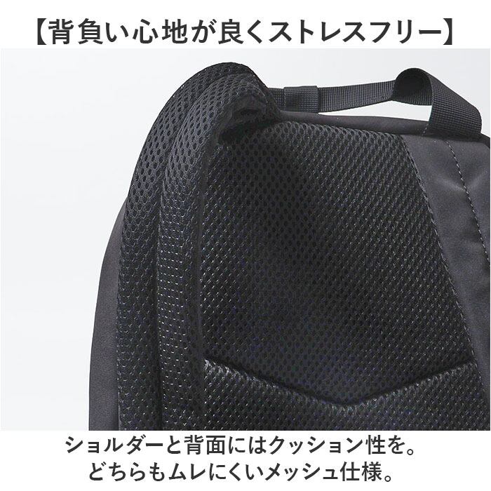 ・ショルダーと背面にはクッション性を。どちらもムレにくいメッシュ仕様。