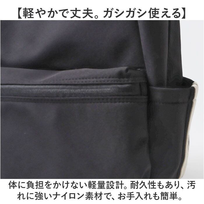・体に負担をかけない軽量設計。耐久性もあり、汚れに強いナイロン素材で、お手入れも簡単。