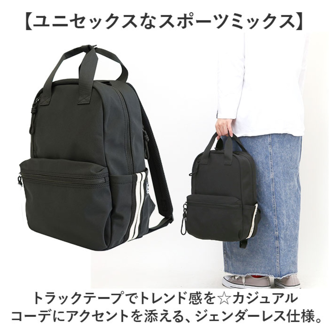 ・サッと持ち出せて、ラフなスタイルに素敵にマッチ!「トラックラインハンドルリュック」。