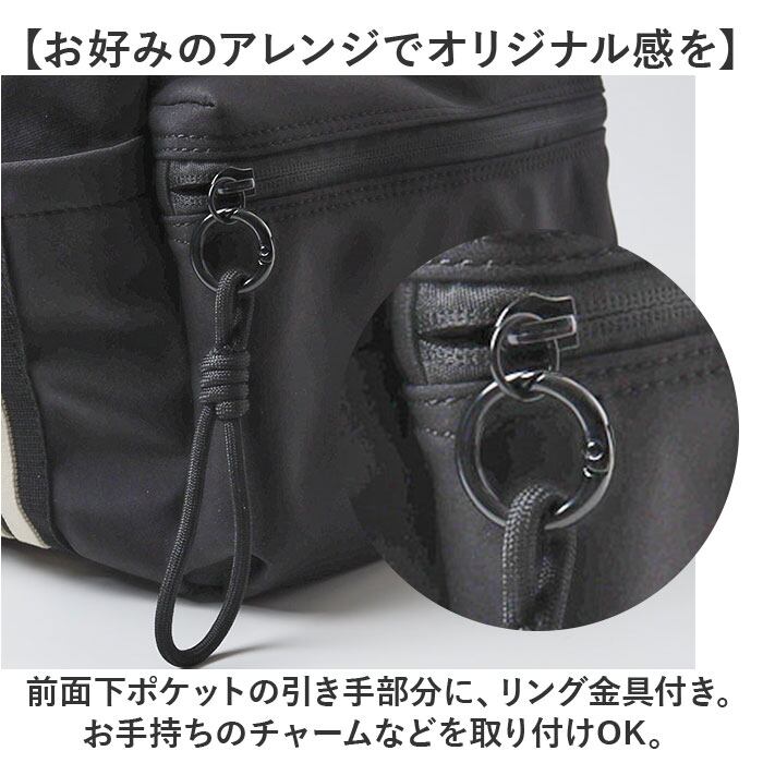 ・前面下ポケットの引き手部分に、リング金具付き。お手持ちのチャームなどを取り付けOK。