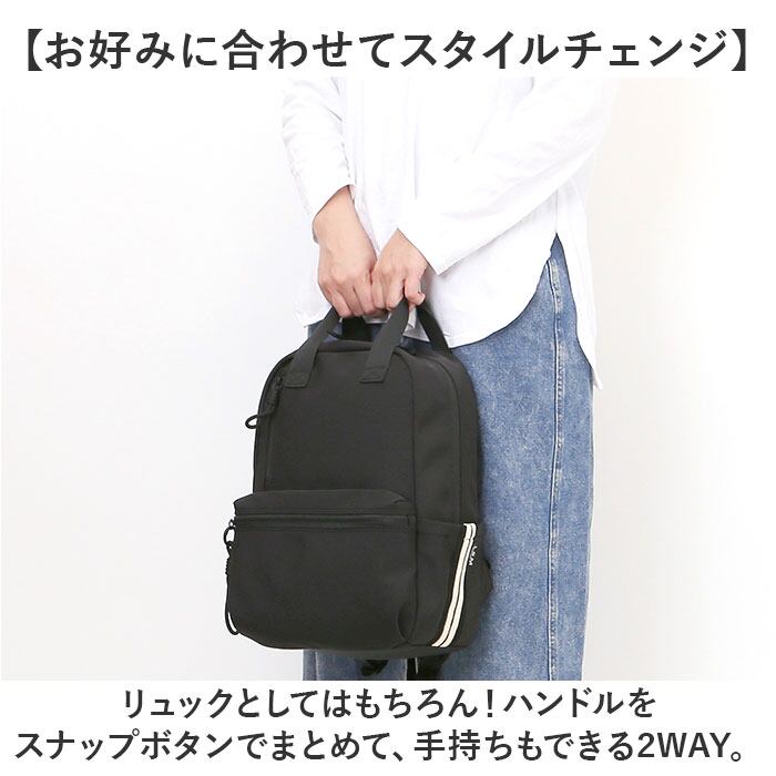 ・リュックとしてはもちろん!ハンドルをスナップボタンでまとめて、手持ちもできる2WAY。