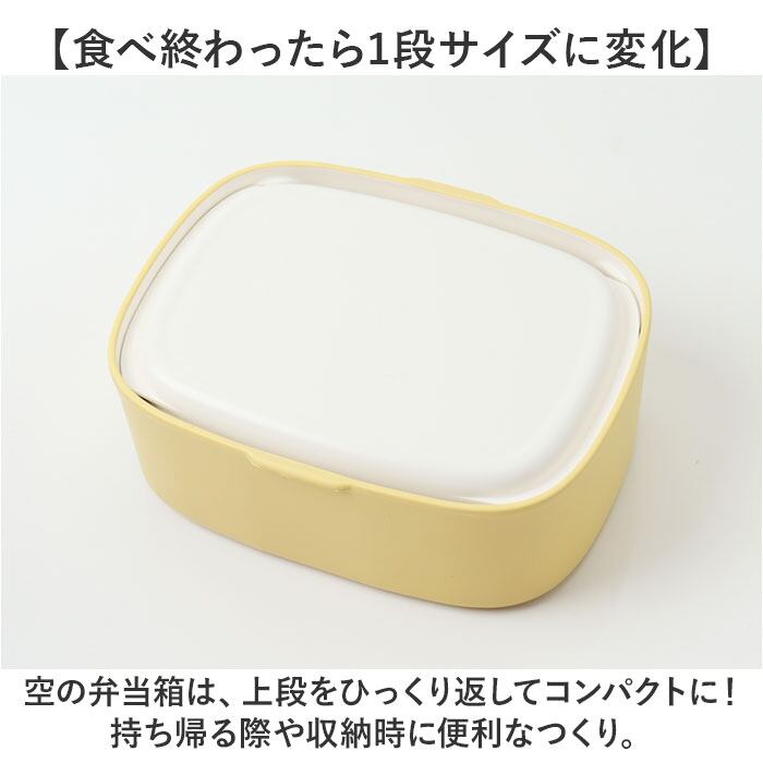 ・空の弁当箱は、上段をひっくり返してコンパクトに!持ち帰る際や収納時に便利なつくり。