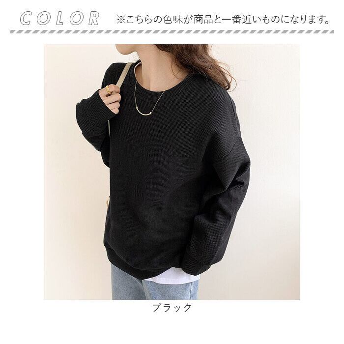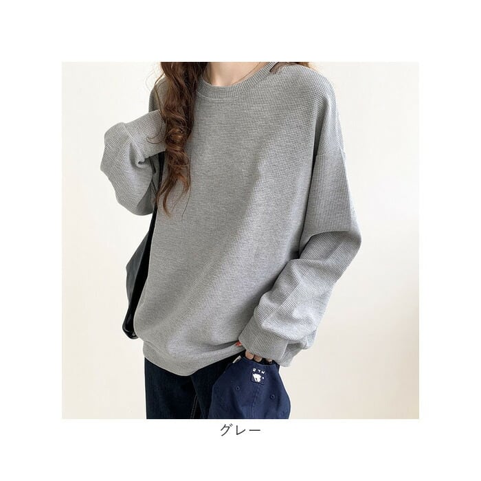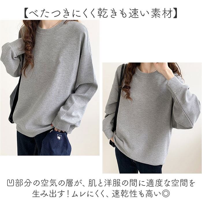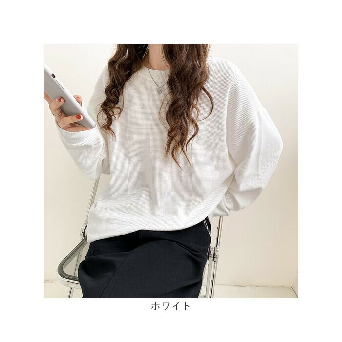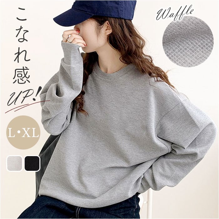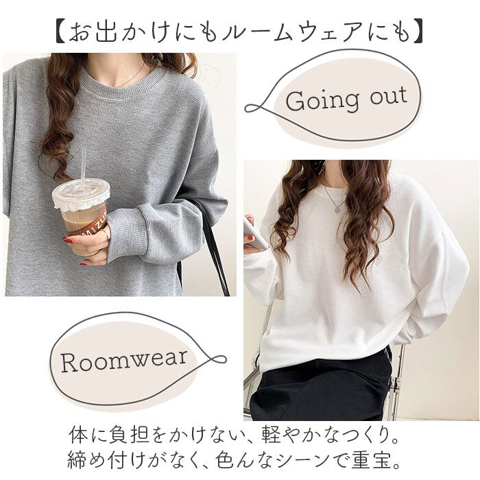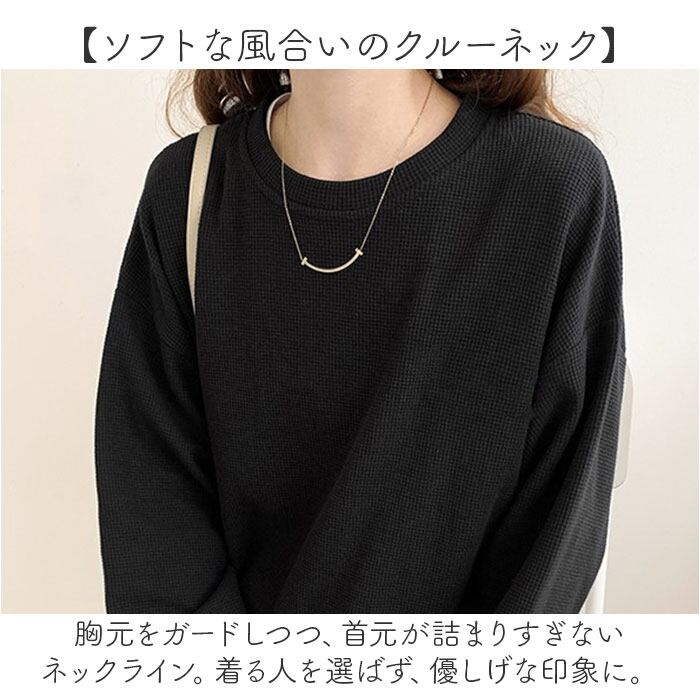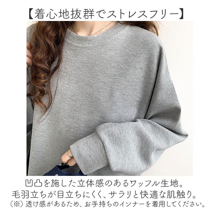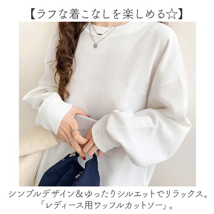 ・シンプルデザイン&ゆったりシルエットでリラックス。「レディース用ワッフルカットソー」。