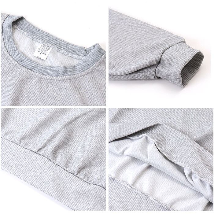 ・凹凸を施した立体感のあるワッフル生地。毛羽立ちが目立ちにくく、サラリと快適な肌触り。