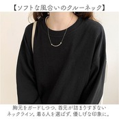 ・胸元をガードしつつ、首元が詰まりすぎないネックライン。着る人を選ばず、優しげな印象に。