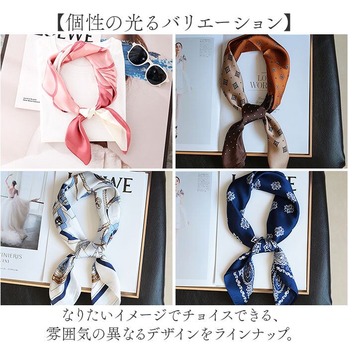 ・おしゃれな小物使いで、コーデを格上げ♪手軽に取り入れやすい、正方形スカーフ。