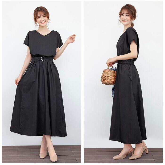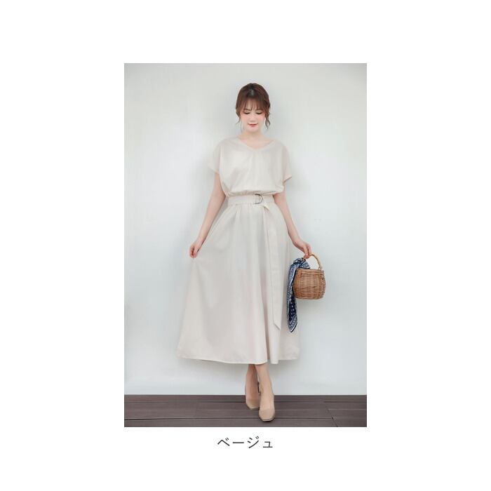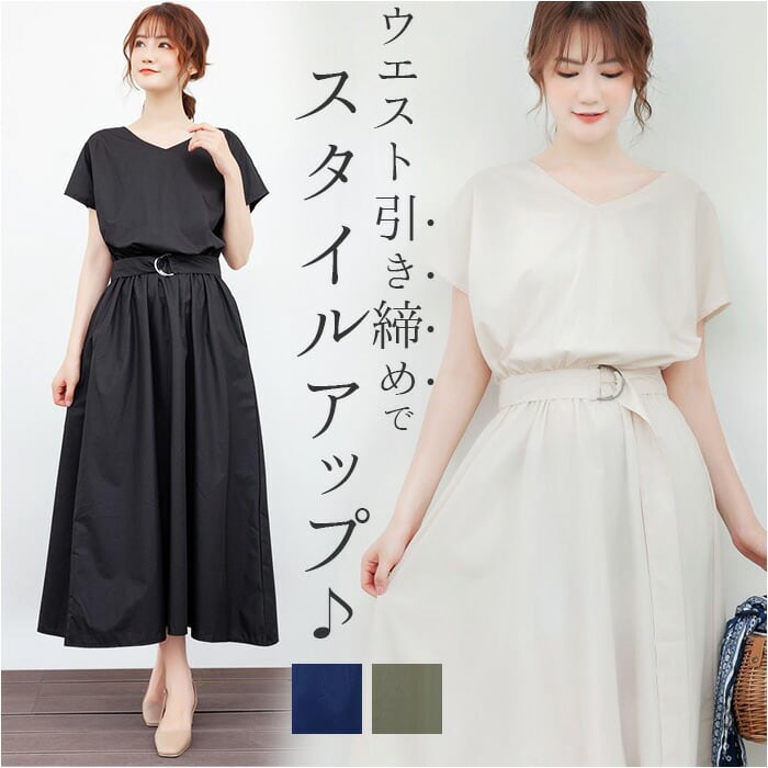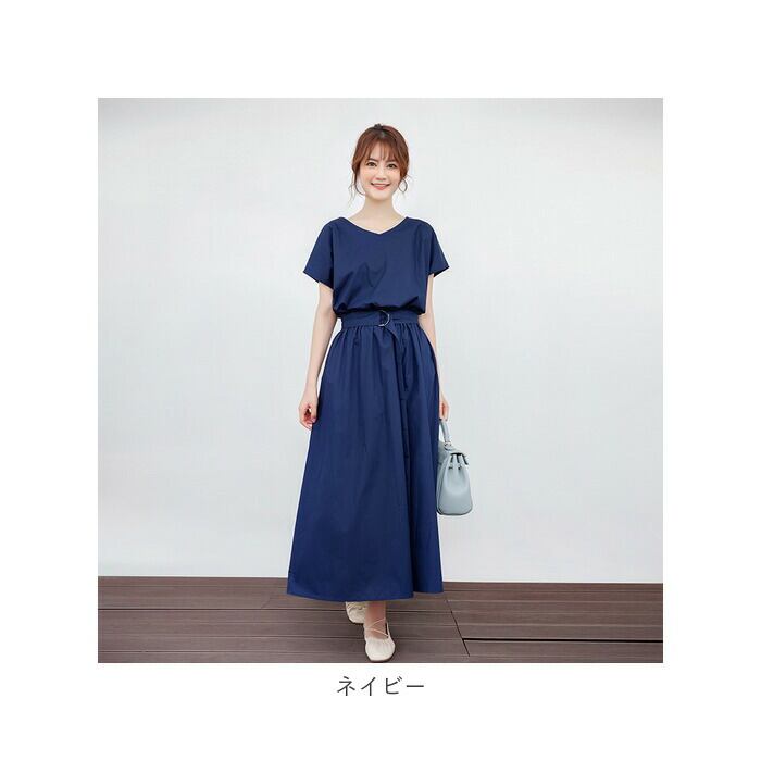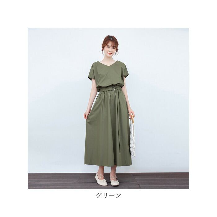 ワンピース 半袖 レディース 通販 ワンピ Vネック Aライン ミドル丈 ラウンドネック ベルト コットン 綿 aライン 無地 シンプル カジュアル 通勤 かわいい おしゃれ