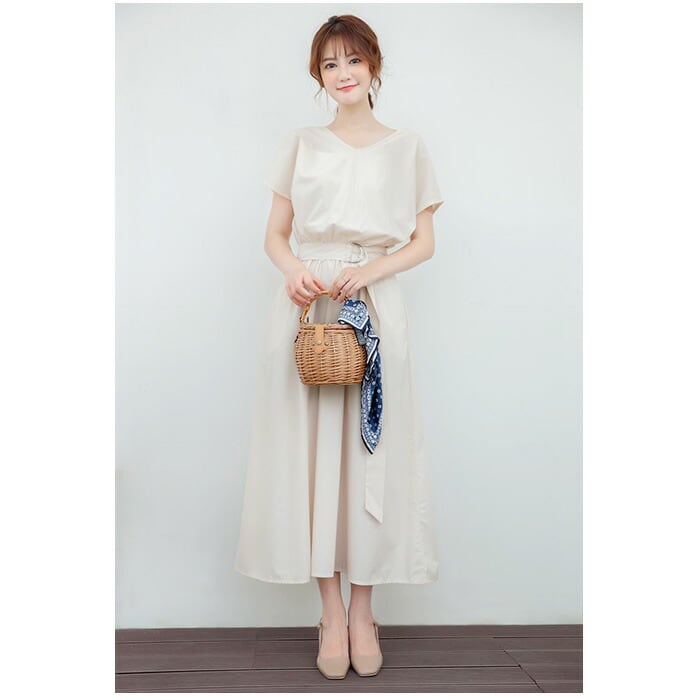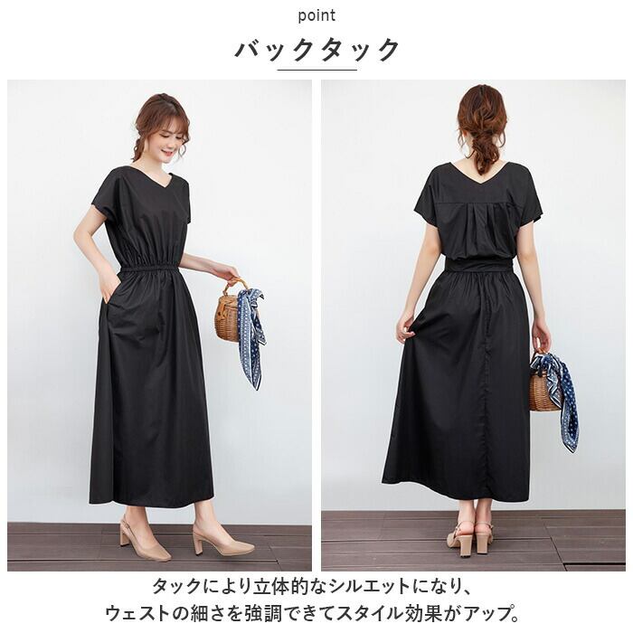 ・ウェストがシャーリングゴムになっていて、引き締め効果でウエストをほっそり見せて女性らしいムードを演出♪