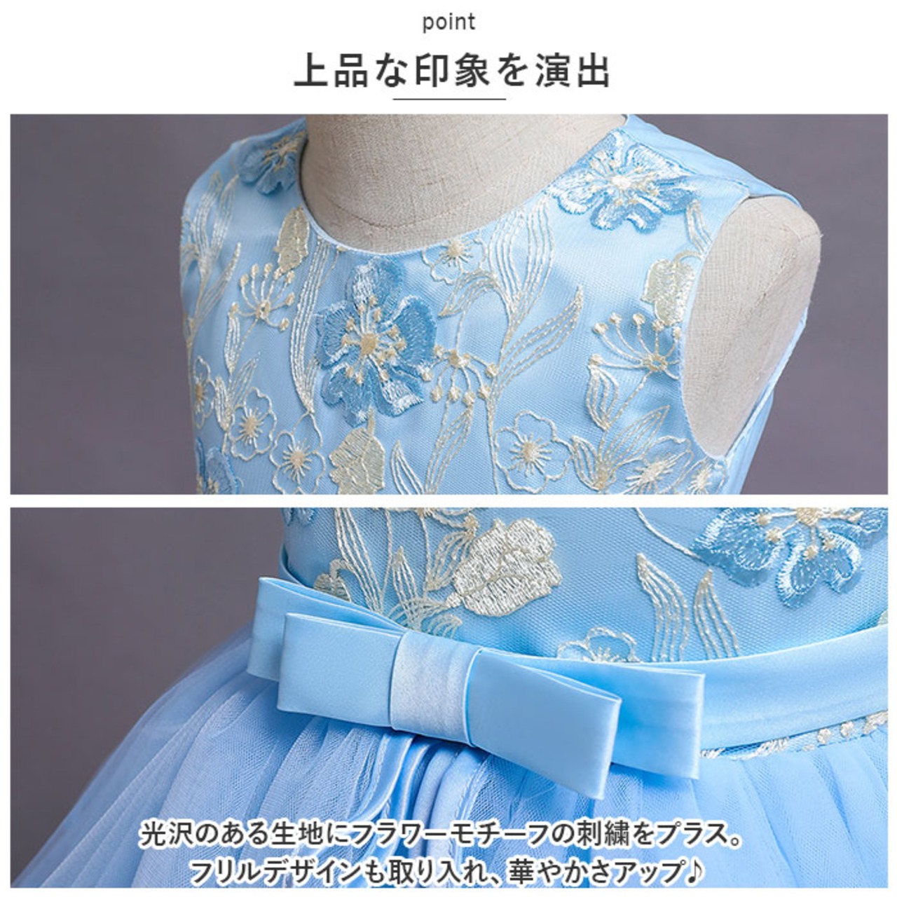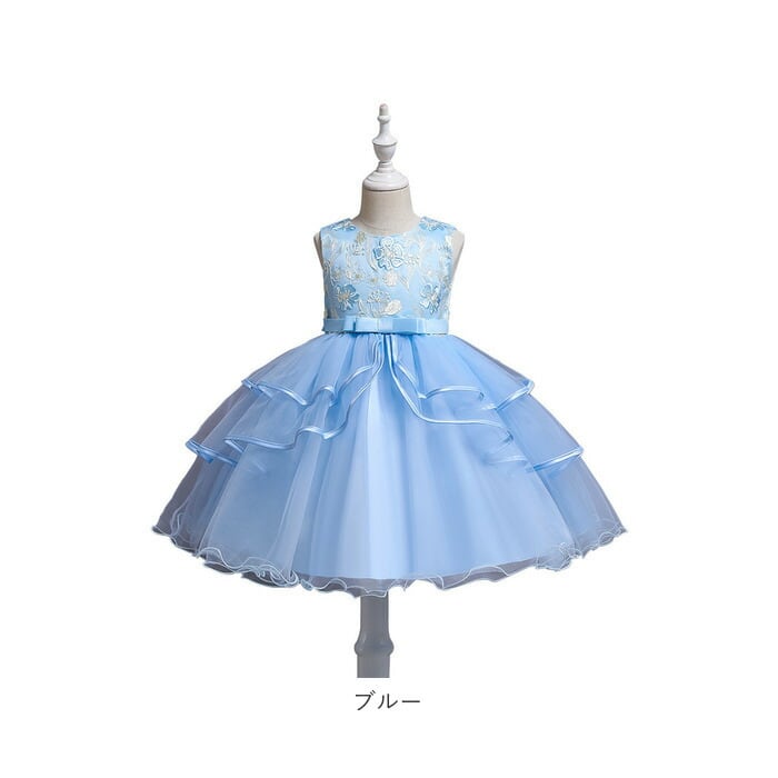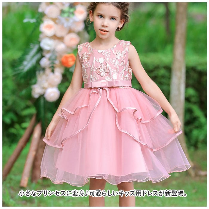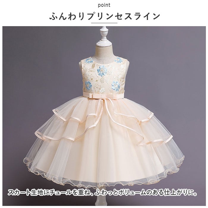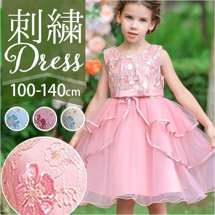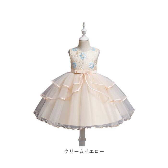 キッズ ドレス 花刺繍 通販 フリルスカート フリル フォーマル 花 刺繍 ワンピース キッズドレス ふんわり フラワー 子供 子ども こども 女の子 パーティー 発表会