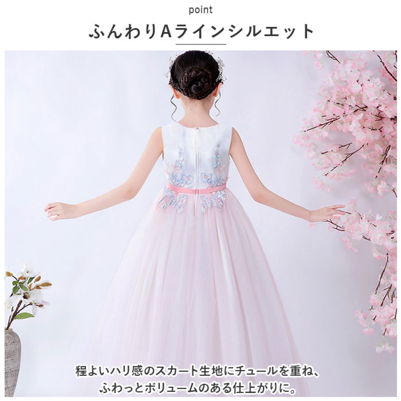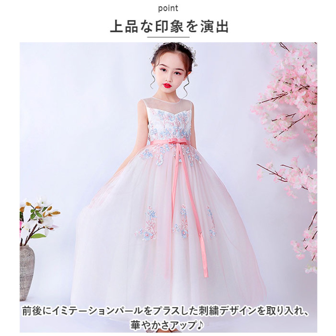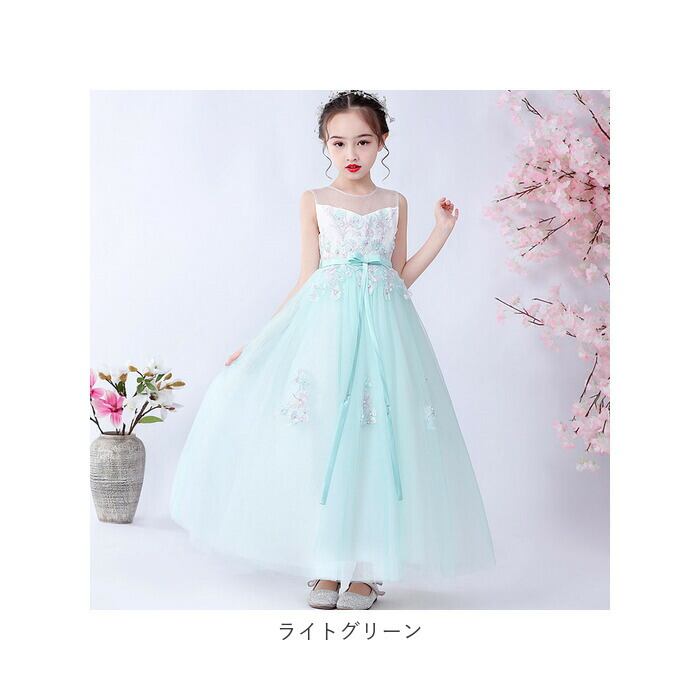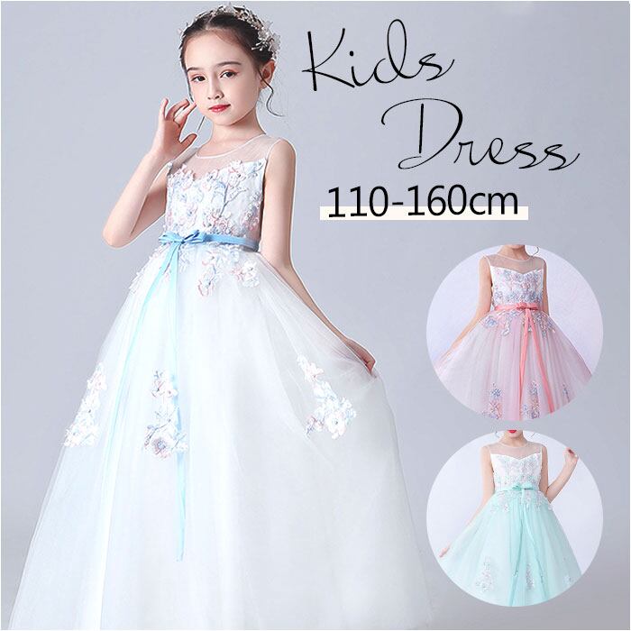 ジュニア ドレス リボン ロング 通販 キッズ 子供ドレス フォーマル フォーマルドレス ワンピース ノースリブ 後ろリボン ロング丈 ミモレ丈 フラワーガール 子供 子ども こども パーティー 発表会