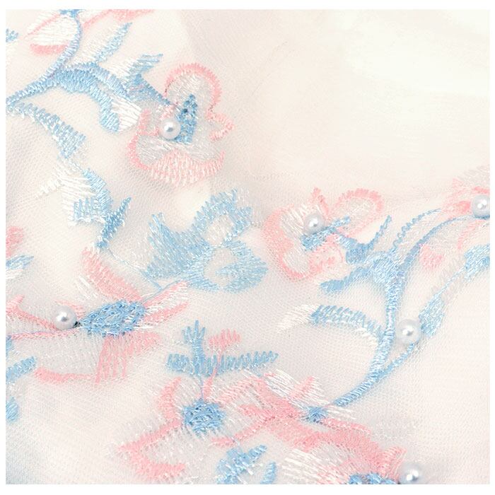・前後にイミテーションパールをプラスした刺繍デザインを取り入れ、華やかさアップ♪