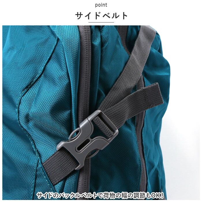 ・サイドのバックルベルトで荷物の幅の調節もOK!