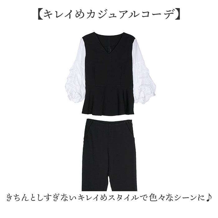 ・レイヤード風のトップスは袖口がふっくらしているので気になる二の腕をほっそり見せる★