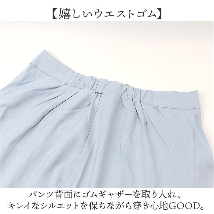 ・パンツ背面にゴムギャザーを取り入れ、キレイなシルエットを保ちながら穿き心地GOOD。