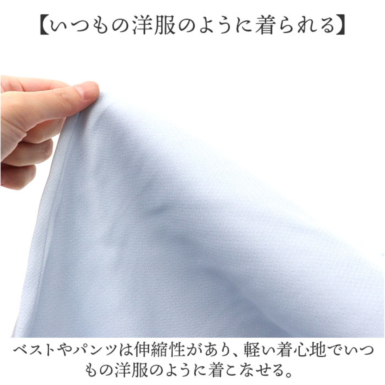 ・ベストやパンツは伸縮性があり、軽い着心地でいつもの洋服のように着こなせる。