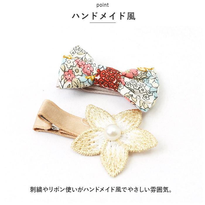 ・刺繍やリボン使いがハンドメイド風でやさしい雰囲気。