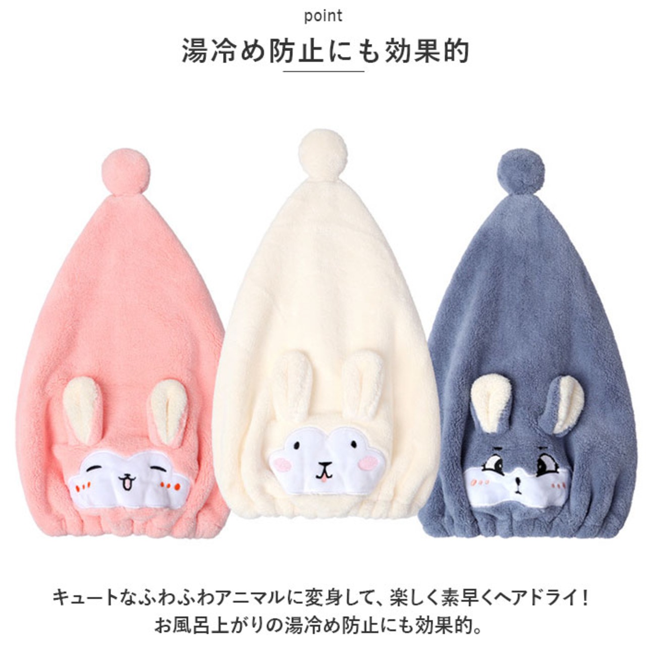 ・キュートなふわふわアニマルに変身して、楽しく素早くヘアドライ!お風呂上がりの湯冷め防止にも効果的。
