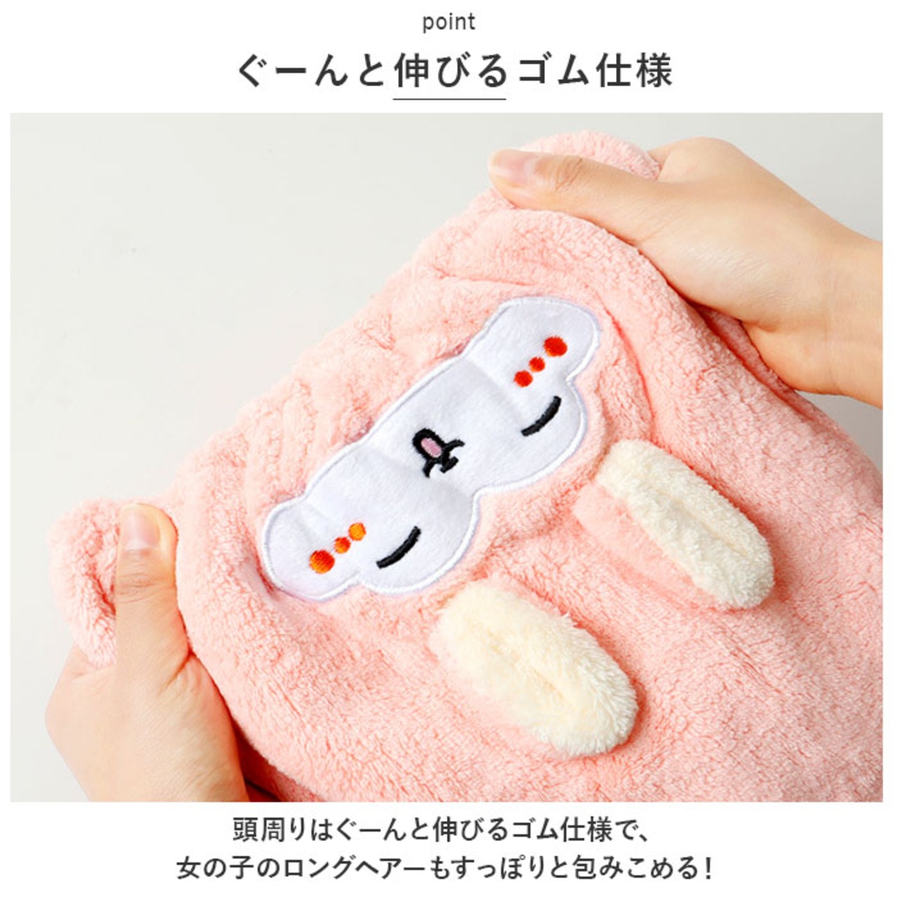 ・ぴょこんと飛び出した耳が可愛い♪ふわふわな肌触りが気持ちいいヘアキャップ。