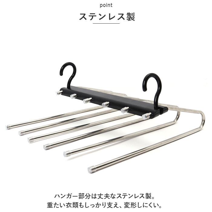 ・ハンガー部分は丈夫なステンレス製。重たい衣類もしっかり支え、変形しにくい。