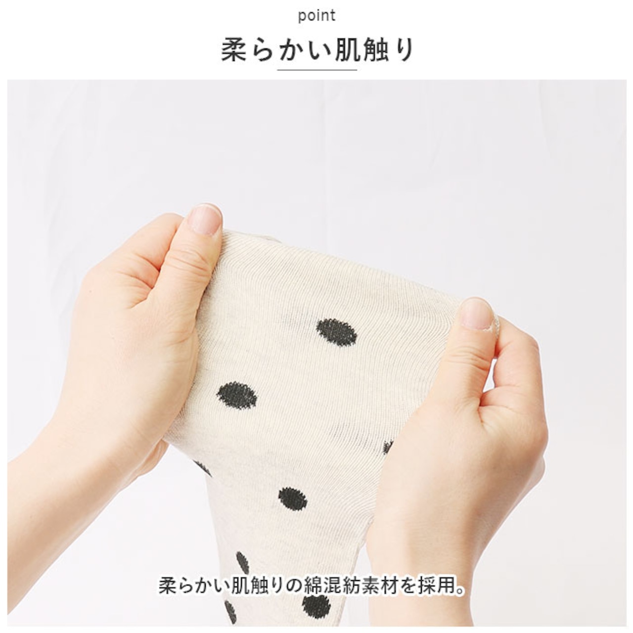 ・柔らかい肌触りの綿混紡素材を採用。