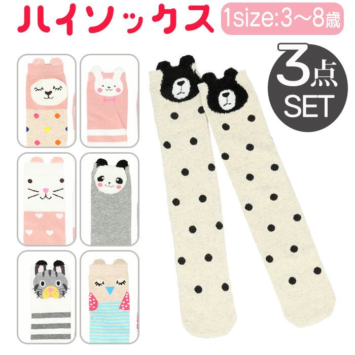 ハイソックス 動物 キッズ 3足セット 通販 ニーハイソックス 靴下 くつ下 3点 セット 3足組 3足 ソックス ロング 厚手 暖かい 綿 キッズ 女の子 男の子 子供 子ども こども 冬 秋 無地 おしゃれ かわいい