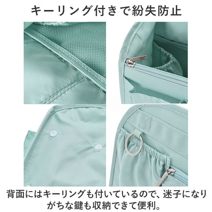 ・背面にはキーリングも付いているので、迷子になりがちな鍵も収納できて便利。