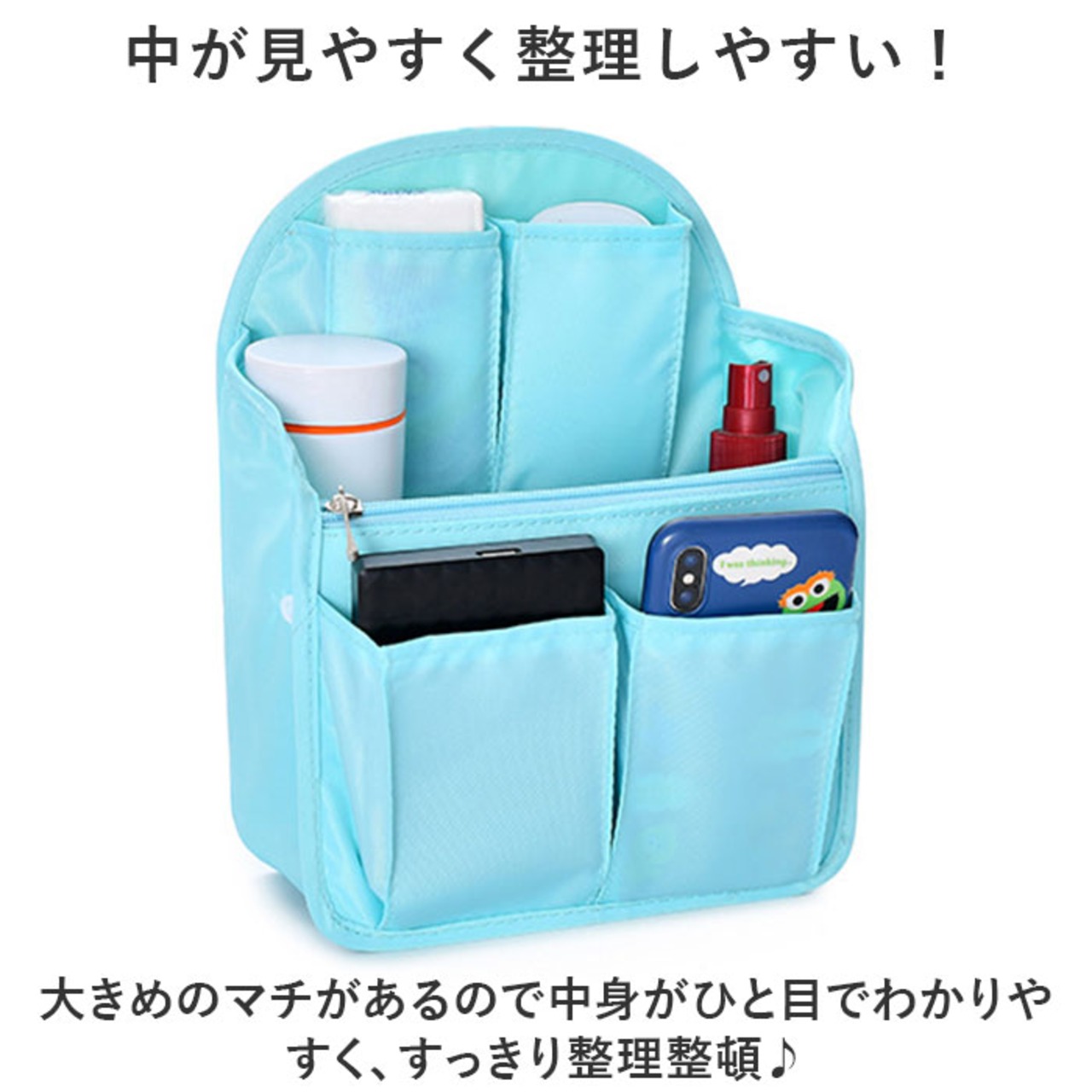 ・大きめのマチがあるので中身がひと目でわかりやすく、すっきり整理整頓♪