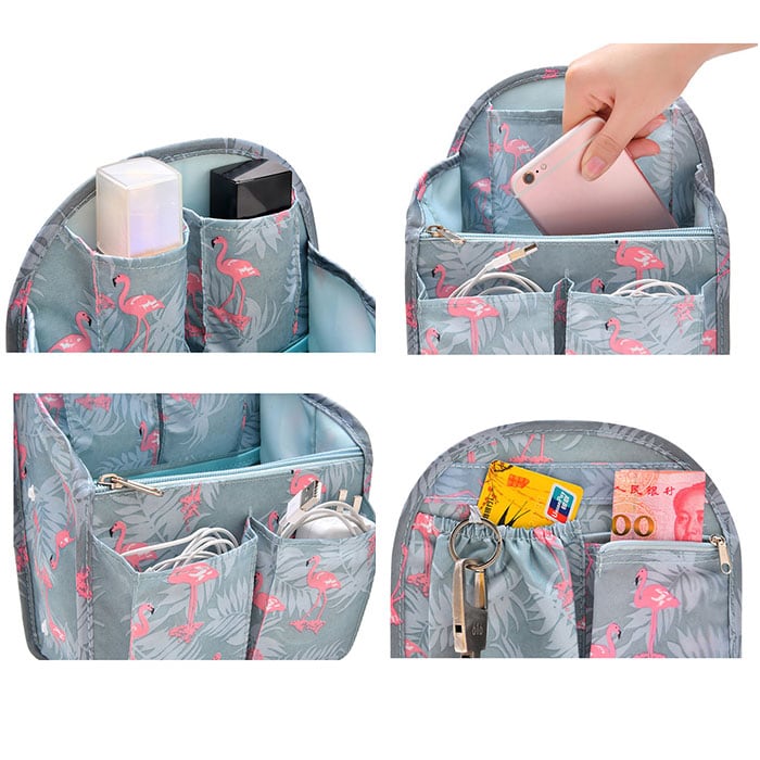 ・内側や外側には荷物を分けて収納できるポケットを多数配置。