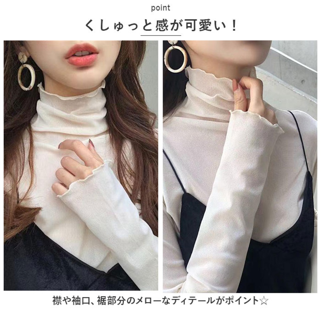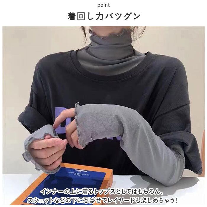 ・首元まで覆えるハイネック仕様。お好みに合わせて高さ調節も自在!