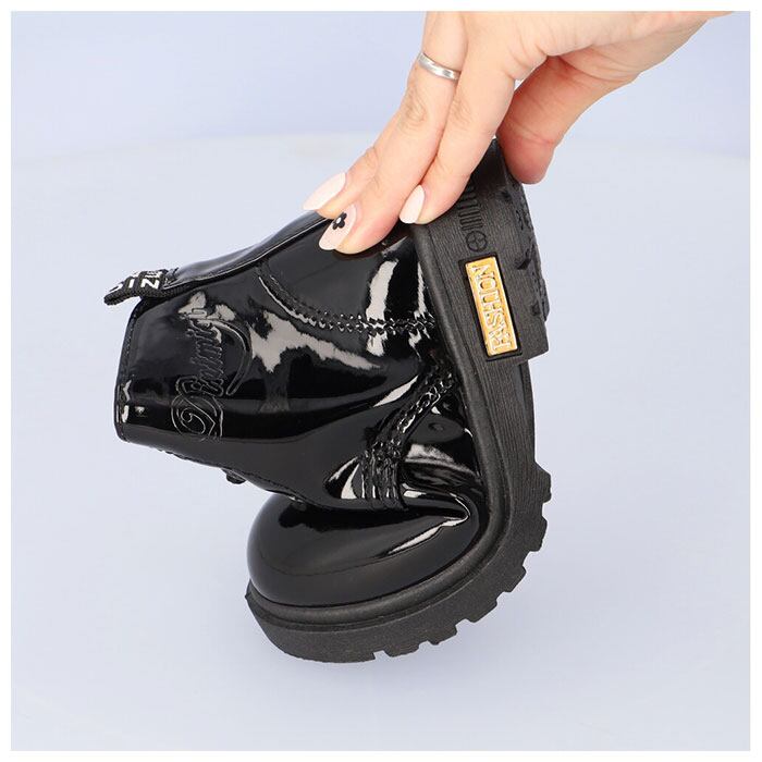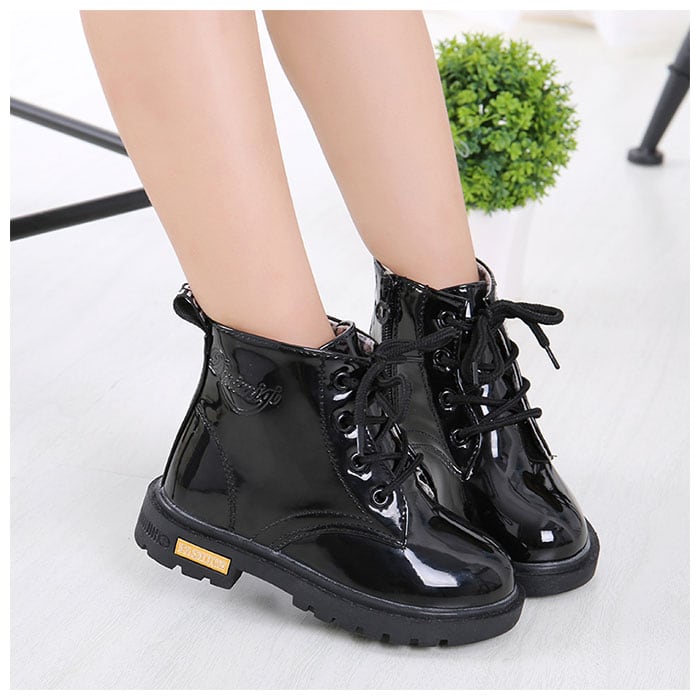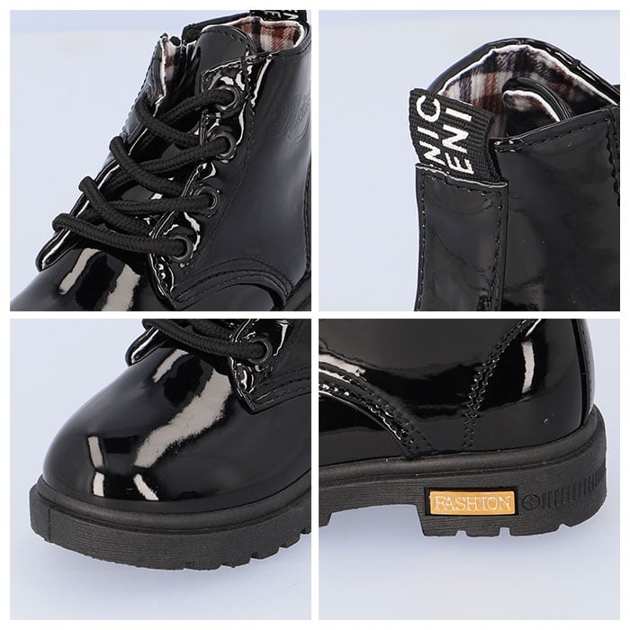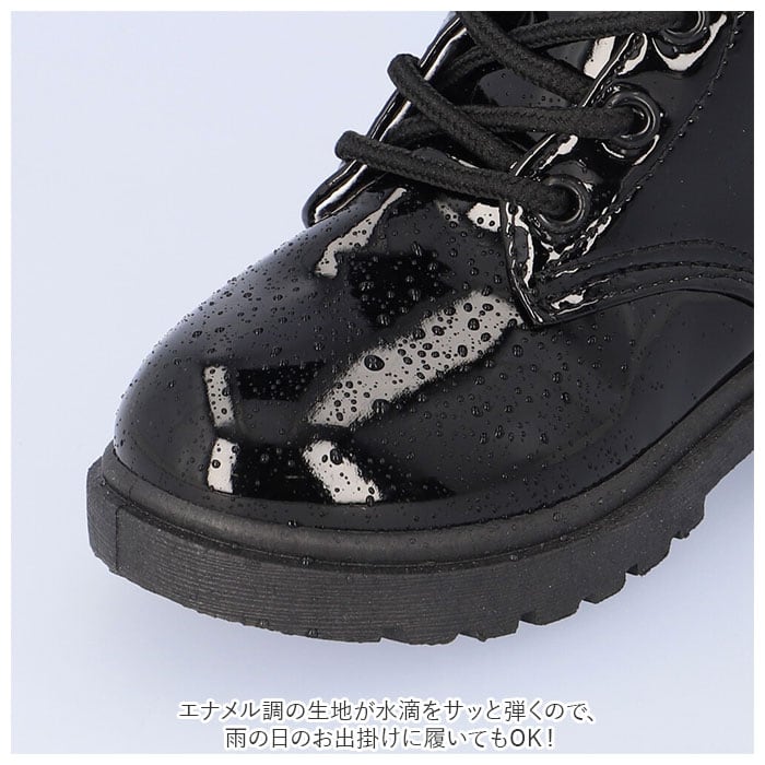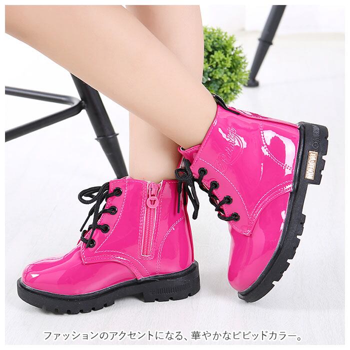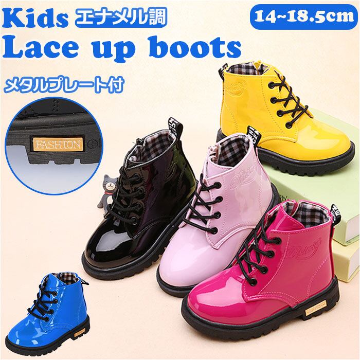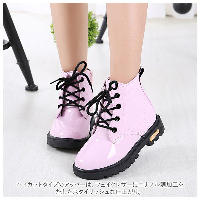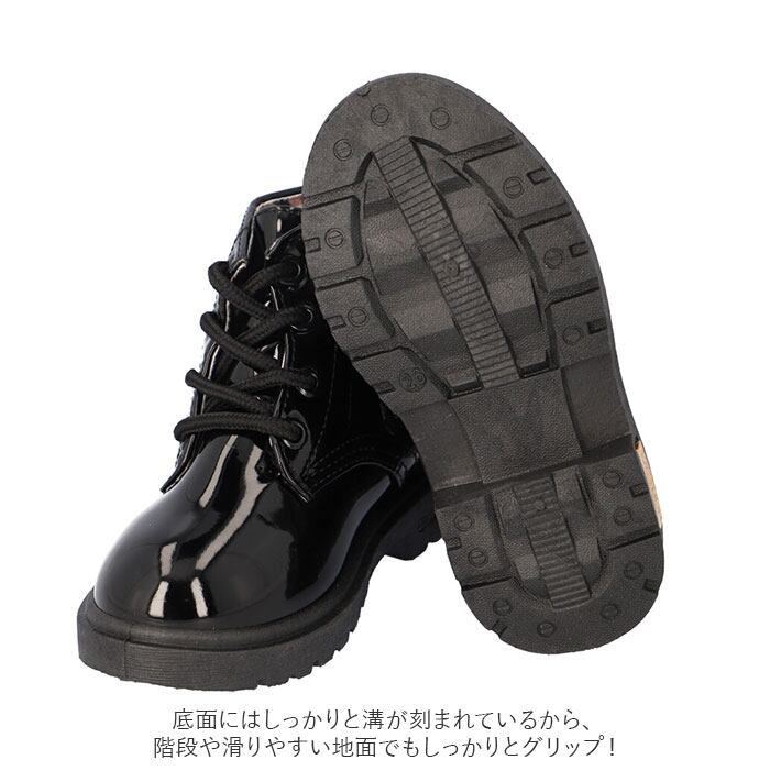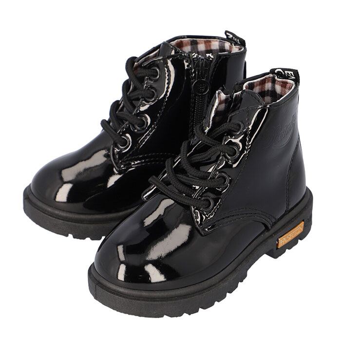 ・キラリと艶めくエナメル調素材が足元を素敵に演出♪大人可愛い「キッズ用レースアップブーツ」が新登場。