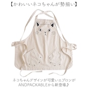 AND PACKABLE アンドパッカブル エプロン 猫 通販 前掛 前掛け ワークエプロン カフェエプロン 猫モチーフ ネコ ねこ ポケット ユニセックス かわいい 可愛い レディース 大人 メンズ 保育士 キッチンファブリック 配膳用品 キッチン用品