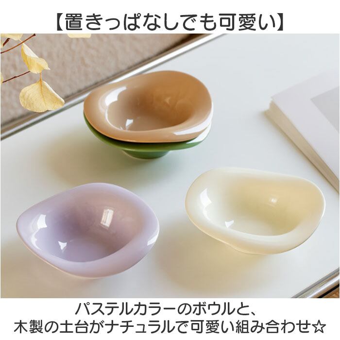 ・パステルカラーのボウルと、木製の土台がナチュラルで可愛い組み合わせ☆