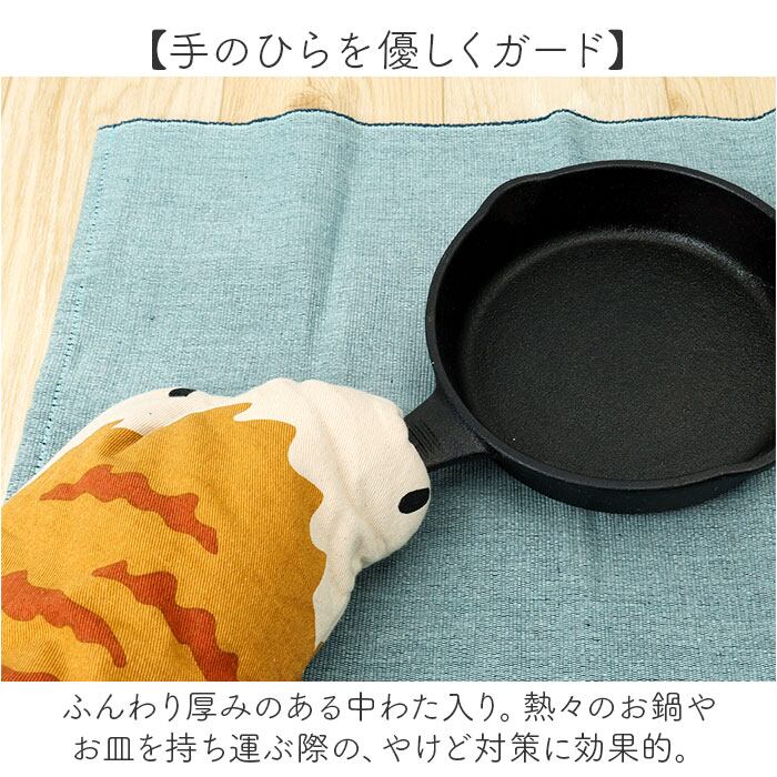 ・ふんわり厚みのある中わた入り。熱々のお鍋やお皿を持ち運ぶ際の、やけど対策に効果的。