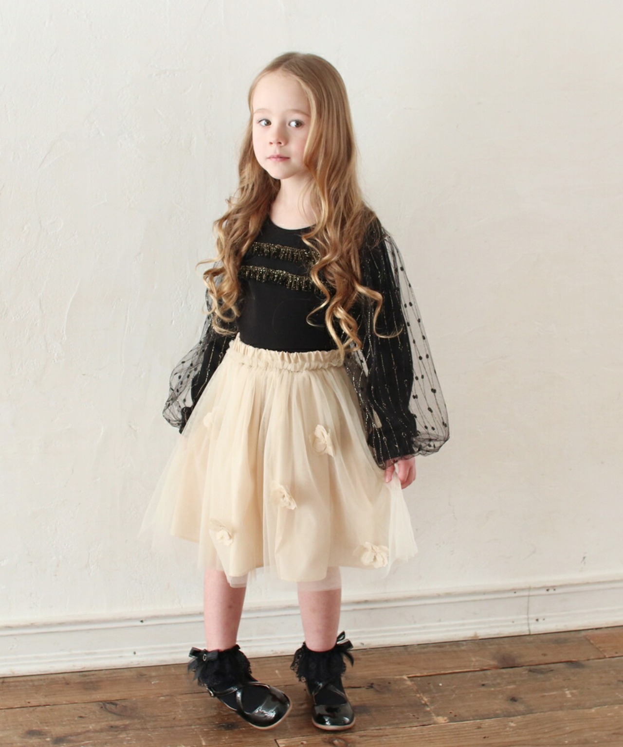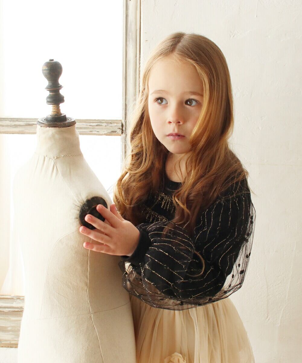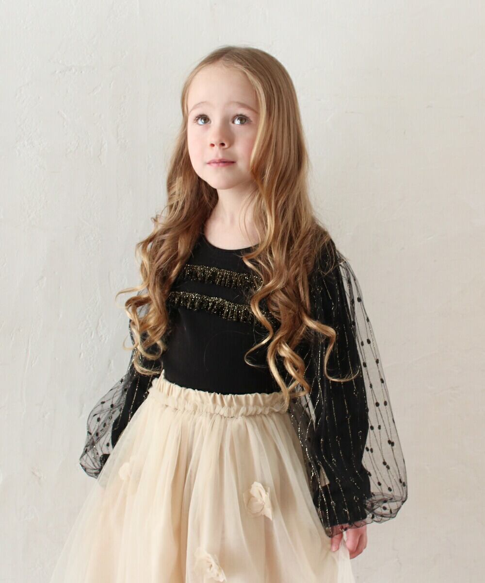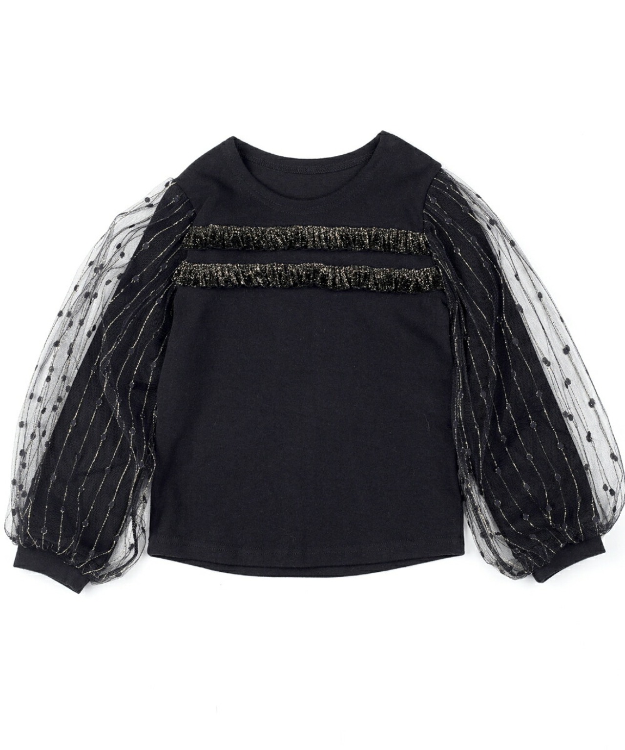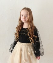 ・大人っぽいtシャツに、ドット柄パフ袖の可愛さをmixした1枚で、とってもゴージャス♪