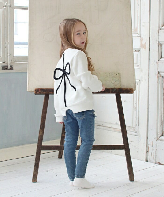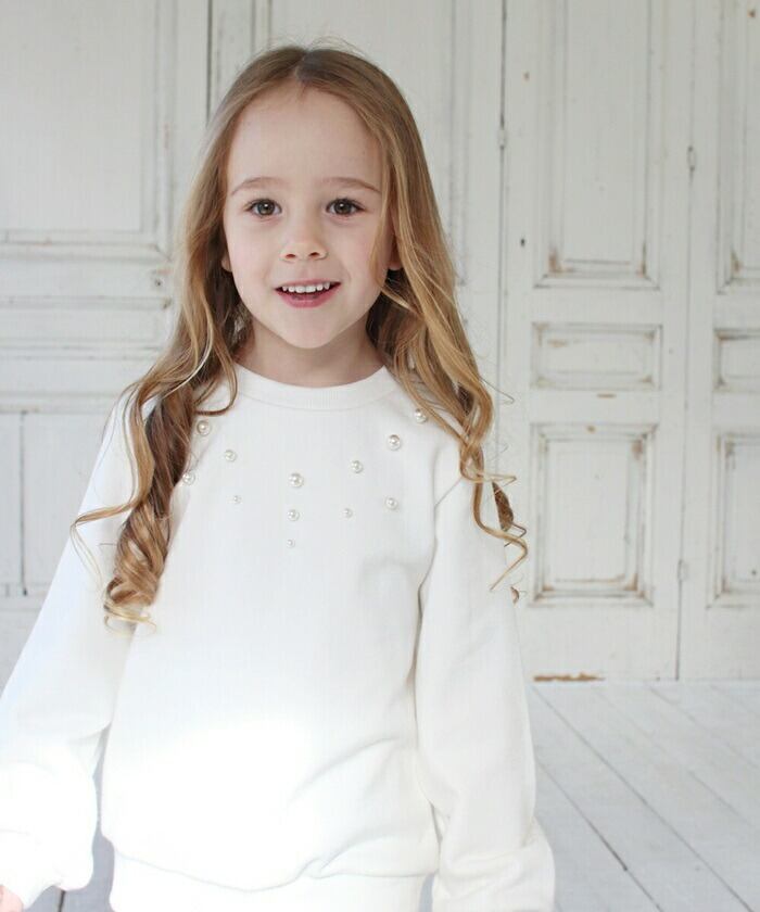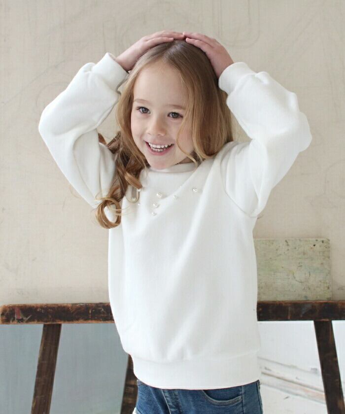 ・シンプルなスウェットに大きなリボン刺繍とパールを加えて大人可愛く仕上げました! 綿100素材使用の優しい着心地感。