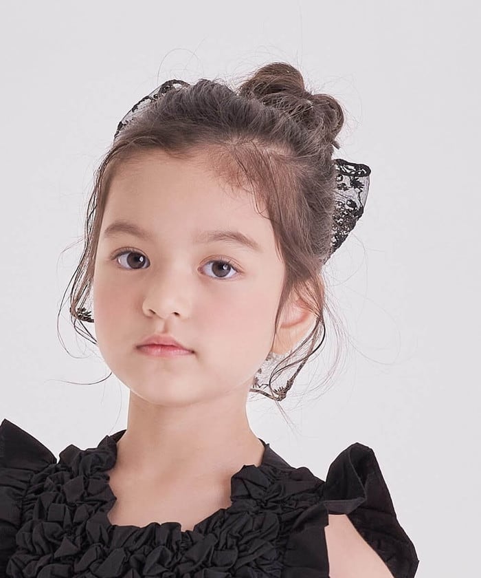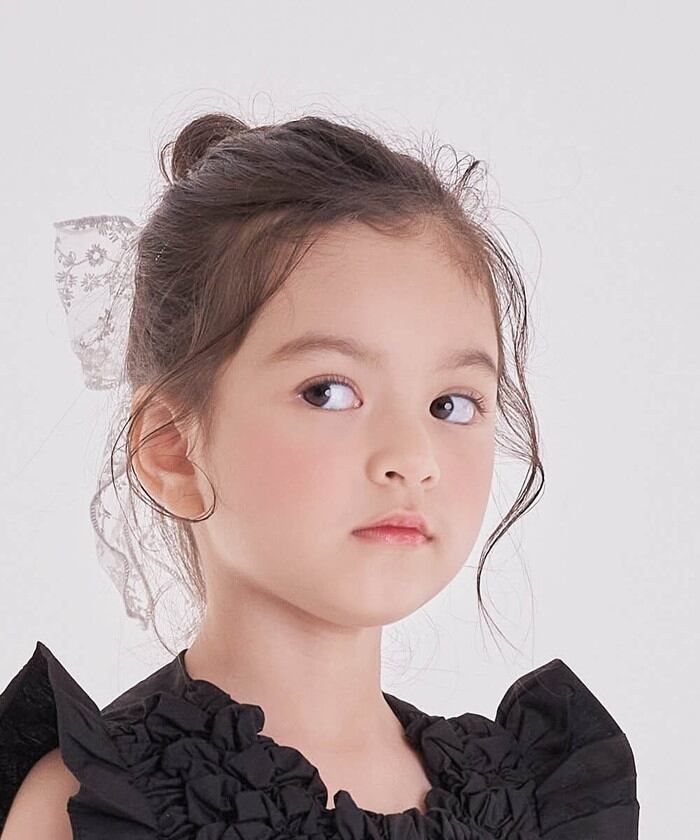 ・花柄の総レースで仕上げた立体的な大きなリボンが女の子の心をときめかせてくれる子供服Roraケイティヘアゴムです。