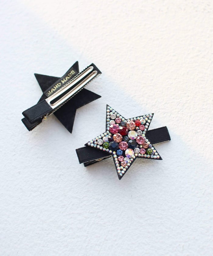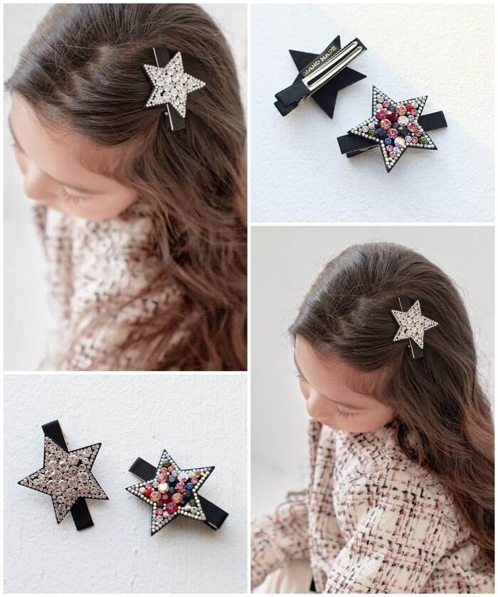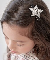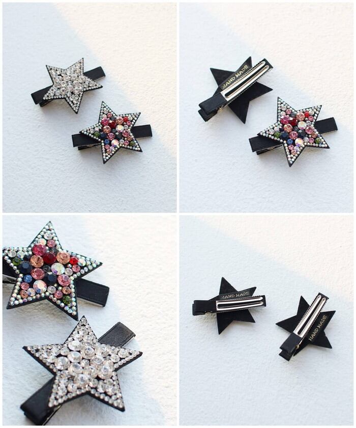 ・チェコクリスタルの輝きに心惹かれる!星に願いをかけたい!髪につけるだけで明るく元気になる子供服Roraプラハ星柄ヘアピンです。