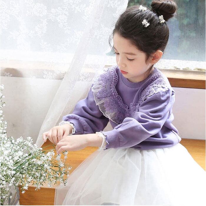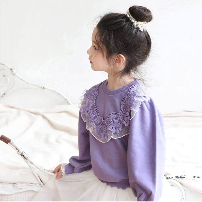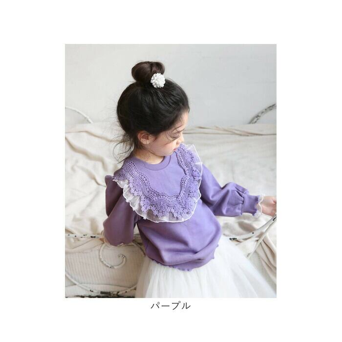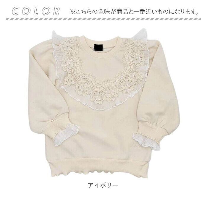 キッズ トレーナー 女の子 通販 スウェット 53032202 プルオーバー スエット 綿100% コットン 裏毛 小学生 ジュニア 通学 フリル レース 秋冬 春 秋 おしゃれ 大人可愛い オシャレ かわいい トップス 子ども服 子供服 キッズファッション